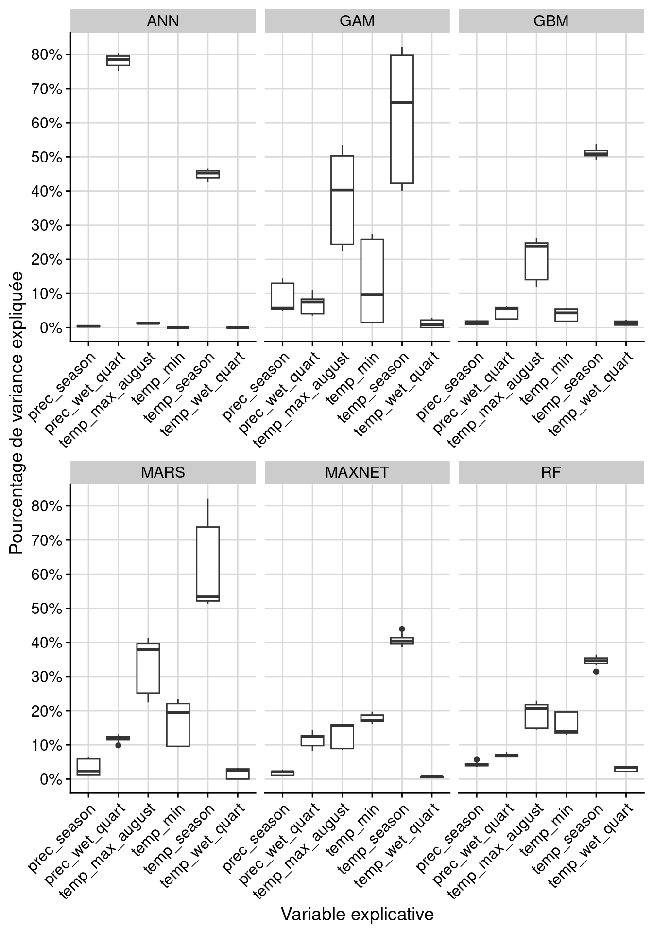 Figure 105.13: Courbes de réponse de chaque variable climatique dans le modèle d’ensemble.