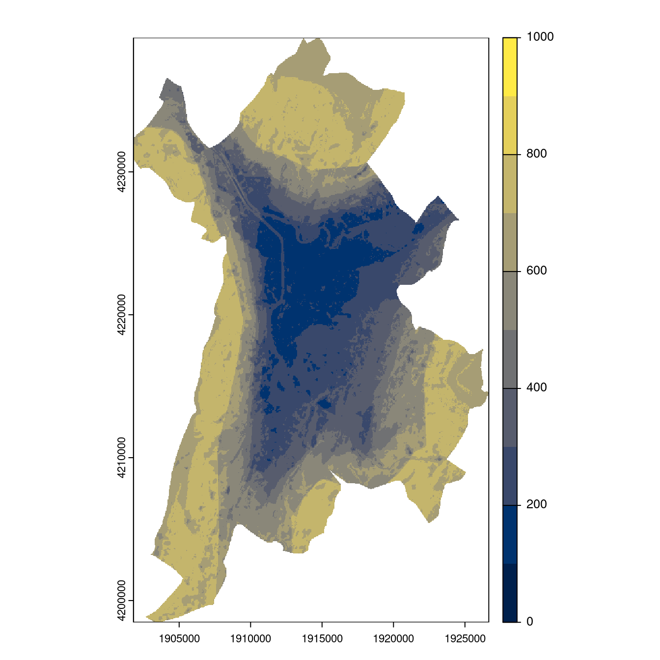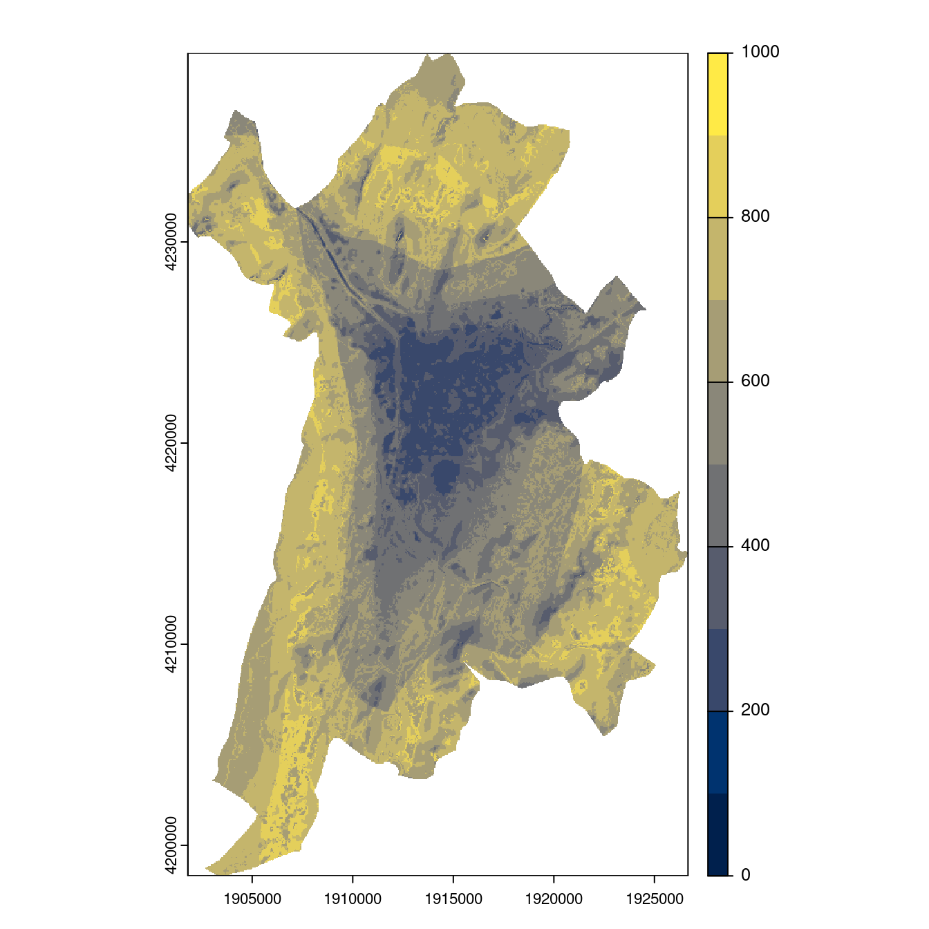 On projette la niche climatique sur ce raster à fine échelle.