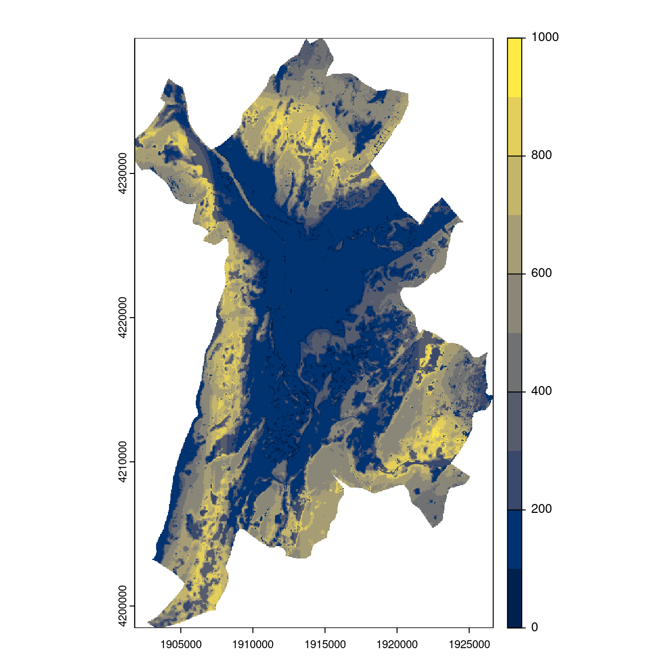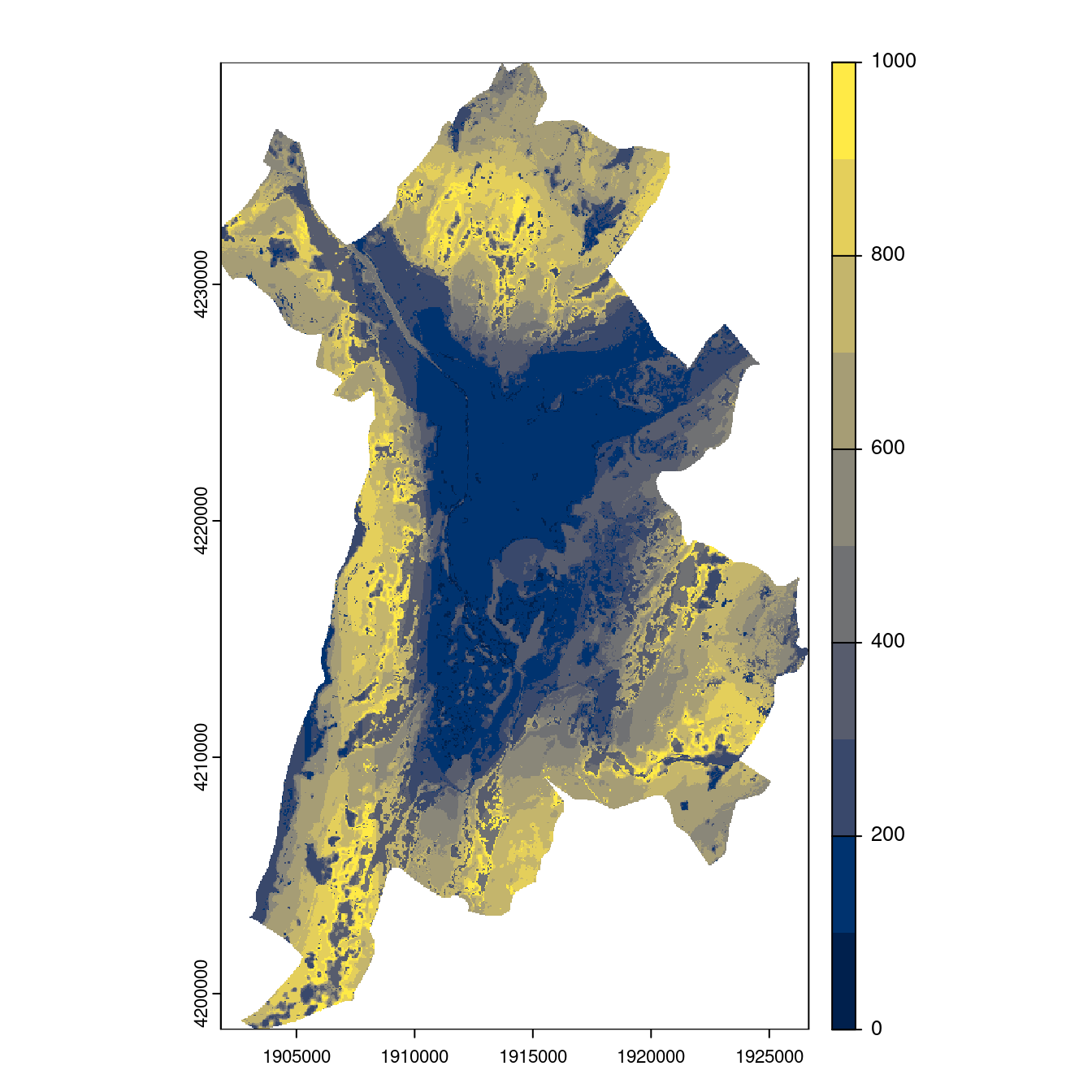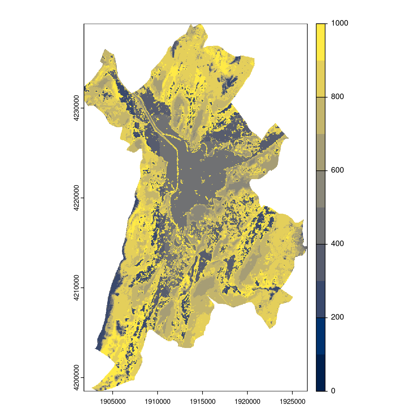 On projette la niche climatique sur ce raster à fine échelle.