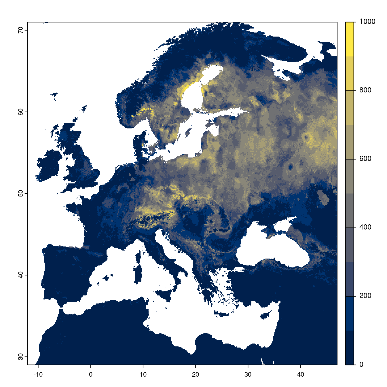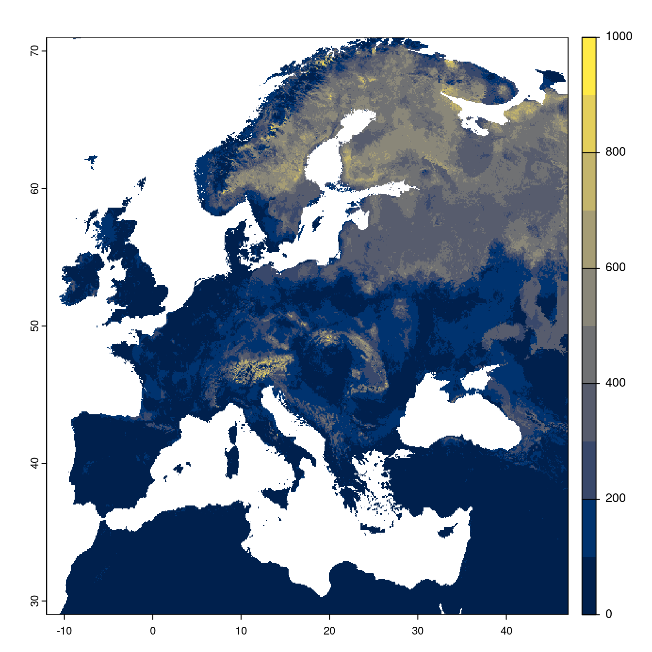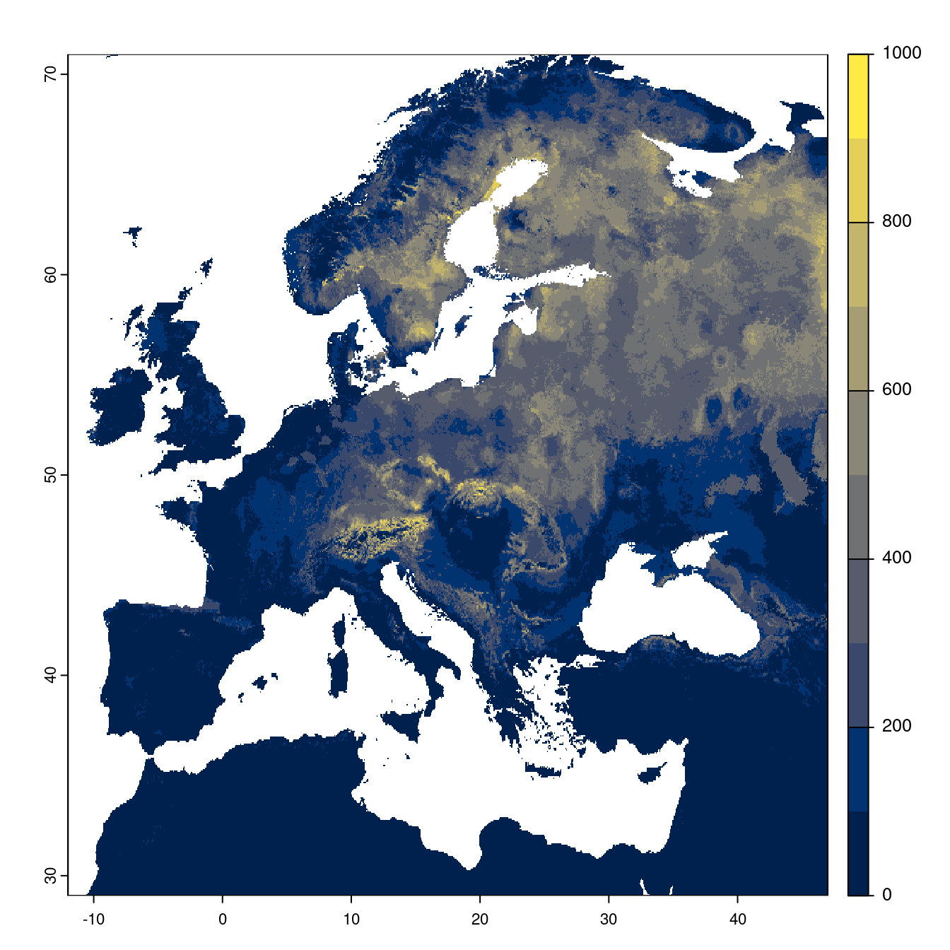 On évalue la proportion d’occurrences dans chaque région, en utilisant les 3 masques créés précédemment. Si on a au moins 50 % des occurrences dans une région, on peut continuer en travaillant uniquement sur ces données. Sinon, on vérifie qu’au moins 67 % des données tombent dans l’ensemble des régions, et on prend la région la plus représentée. Au final, s’il s’agit d’une espèce endémique d’Europe, on n’a pas besoin de manipulation supplémentaire.