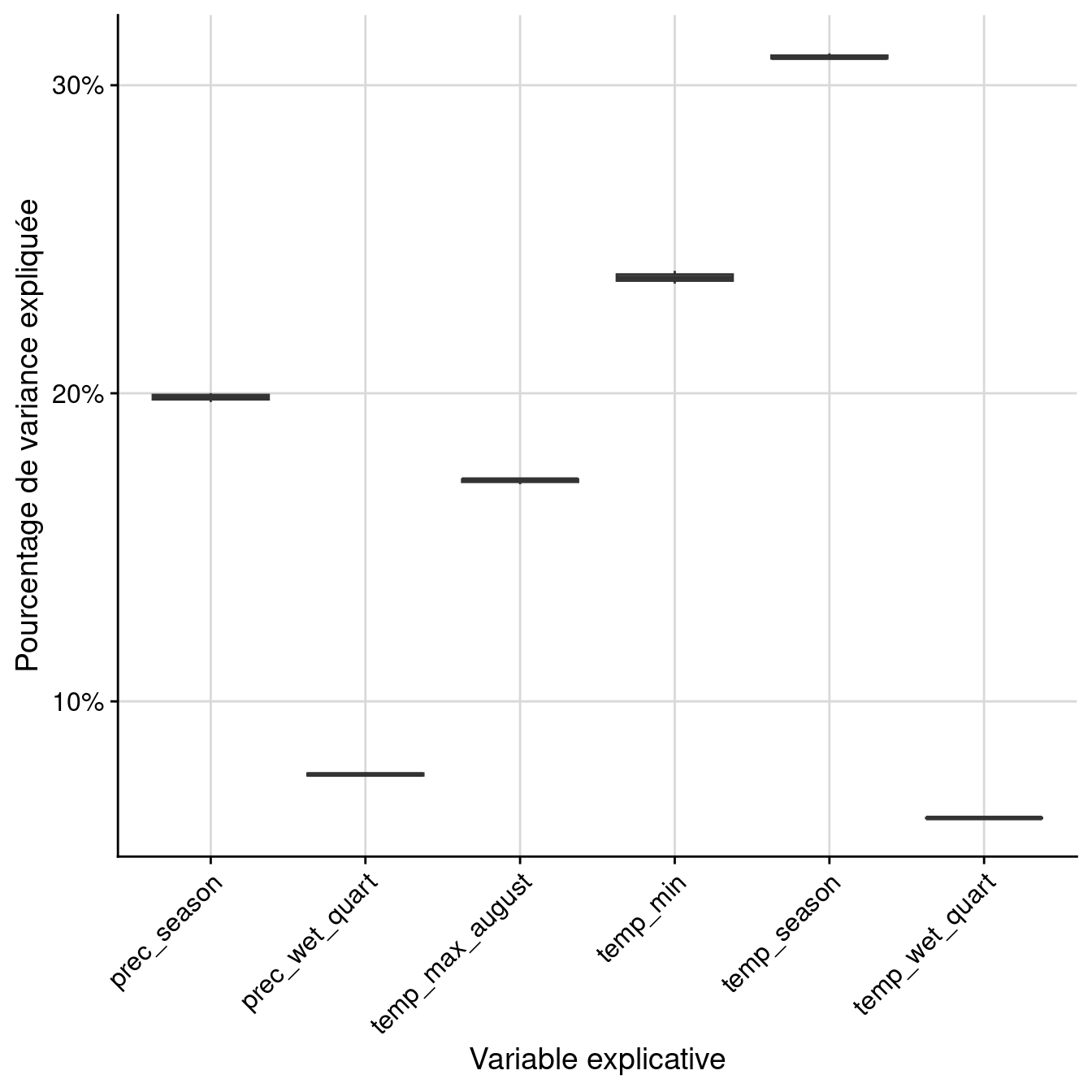 Figure 5.12: Pourcentage de variance expliquée par variable dans le modèle d’ensemble.