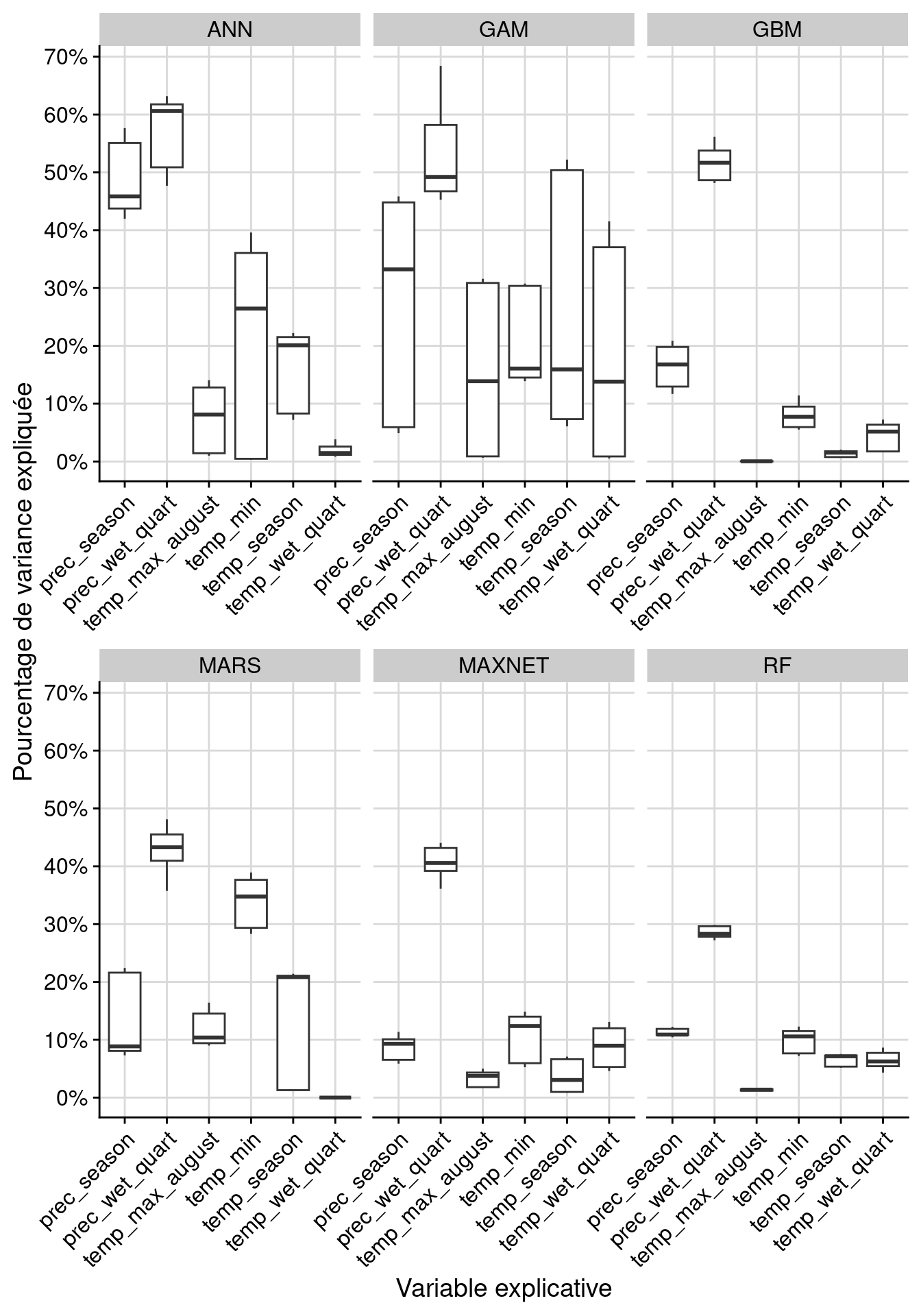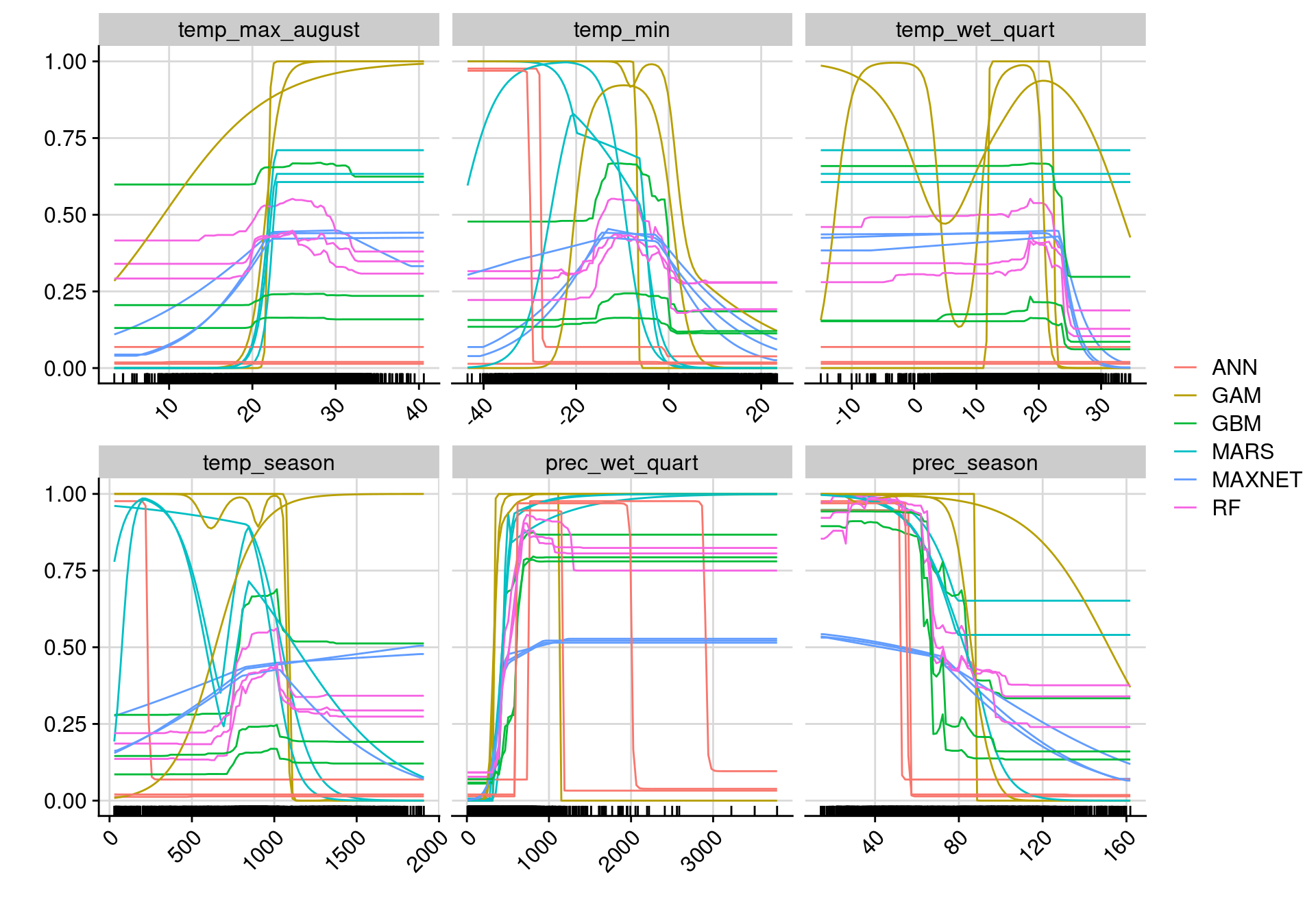 Figure 111.13: Courbes de réponse de chaque variable climatique dans le modèle d’ensemble.