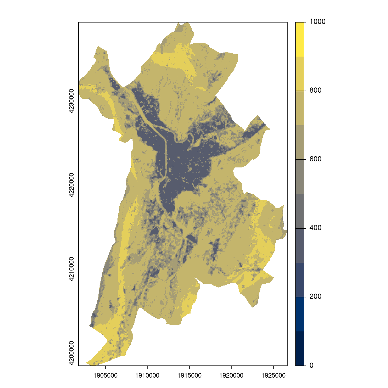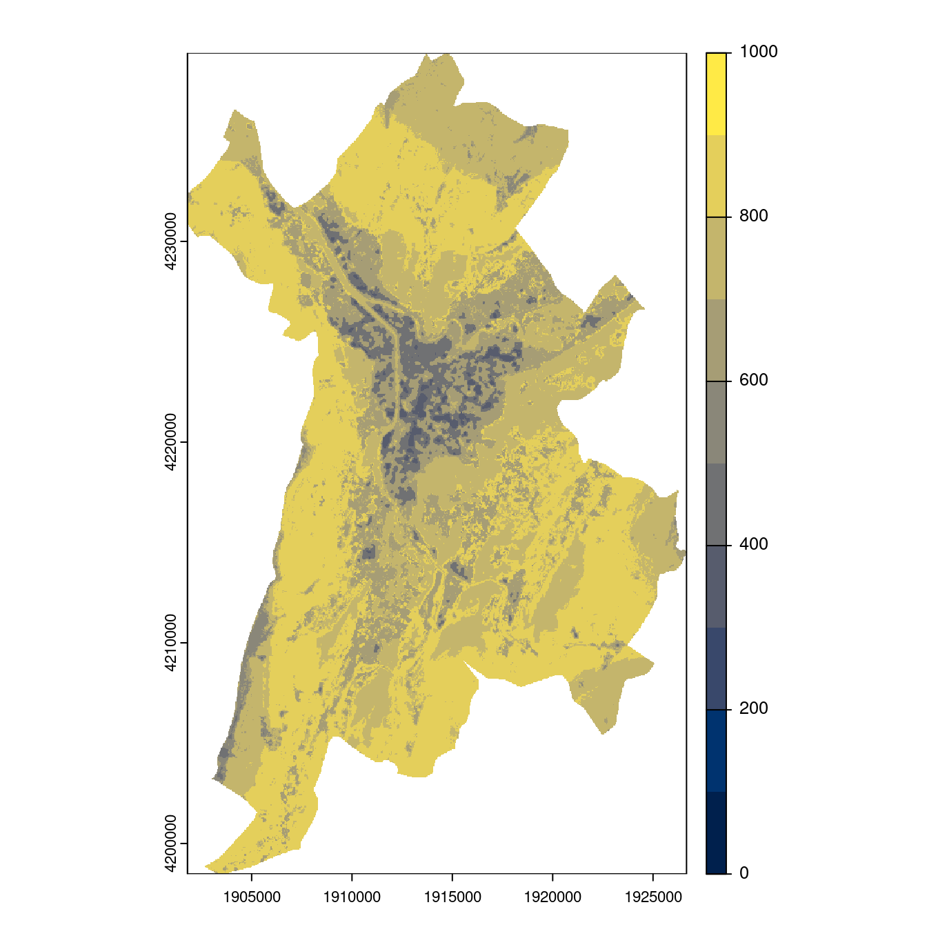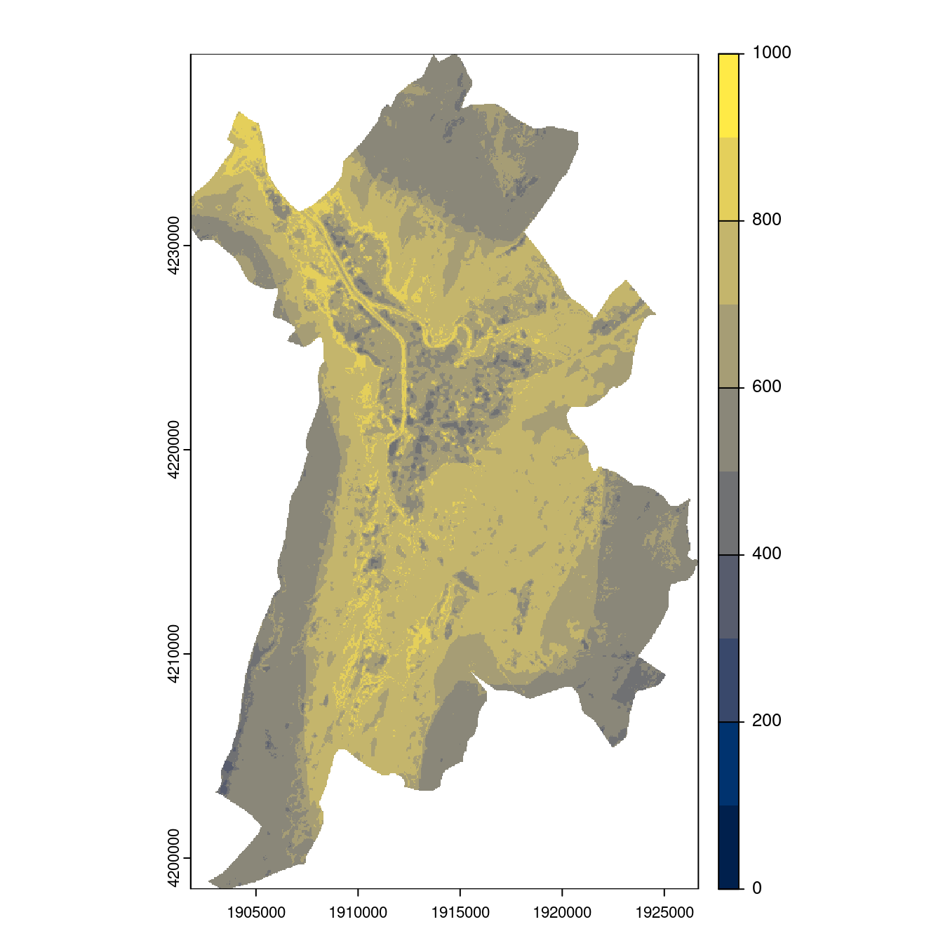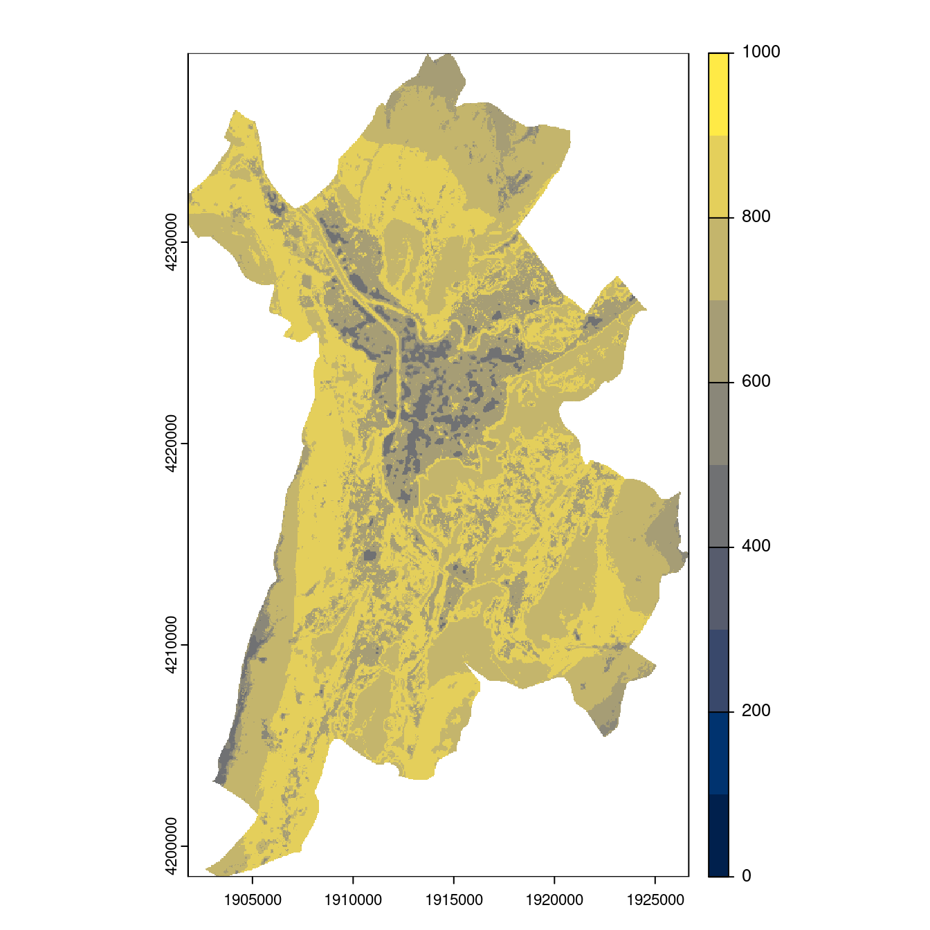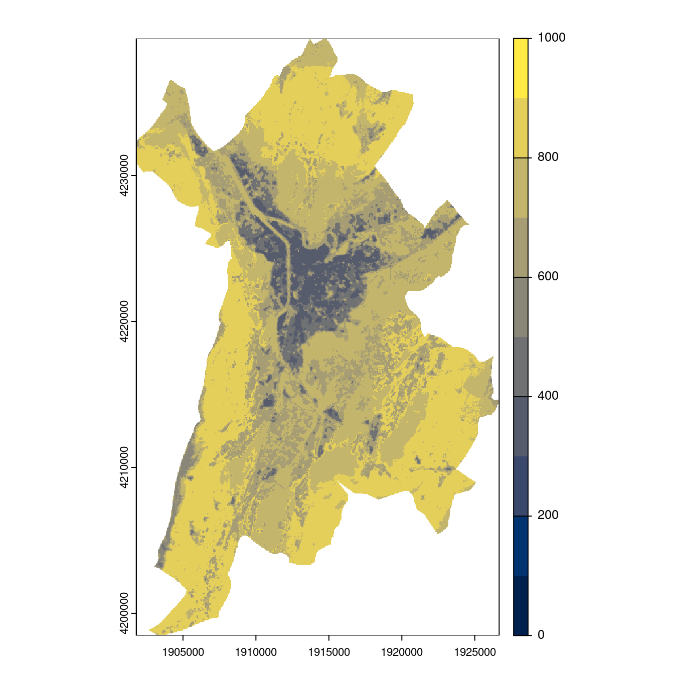 On projette la niche climatique sur ce raster à fine échelle.