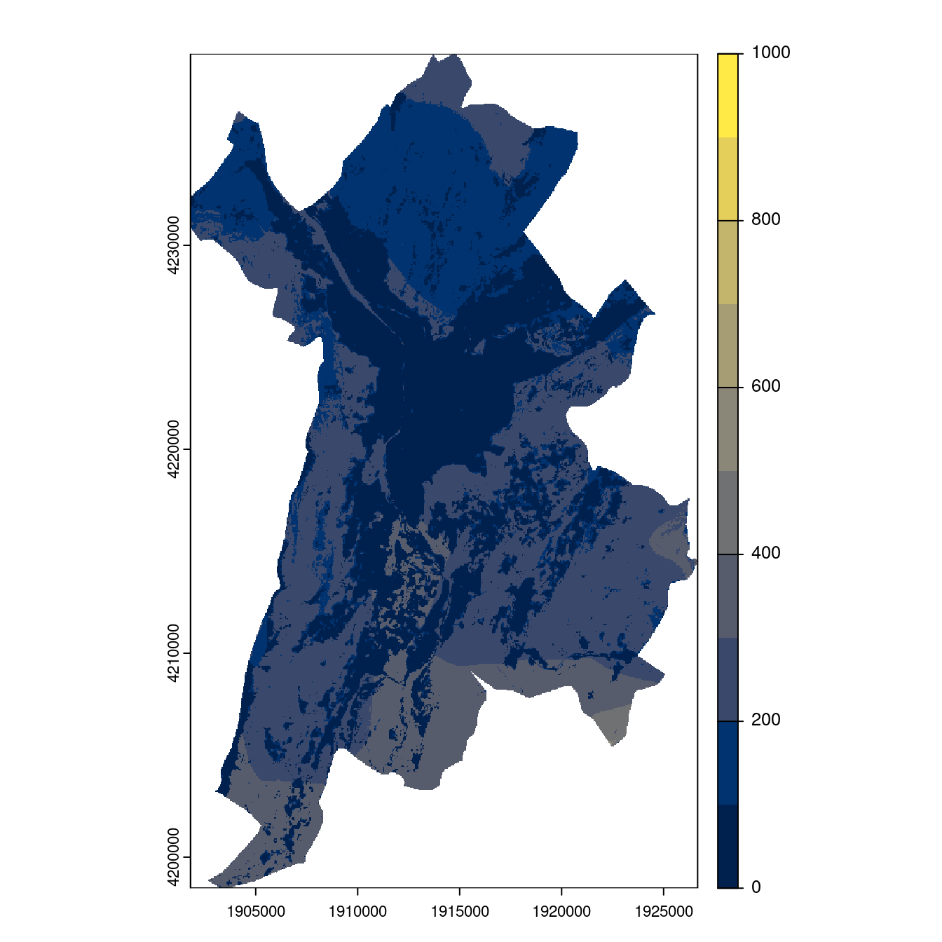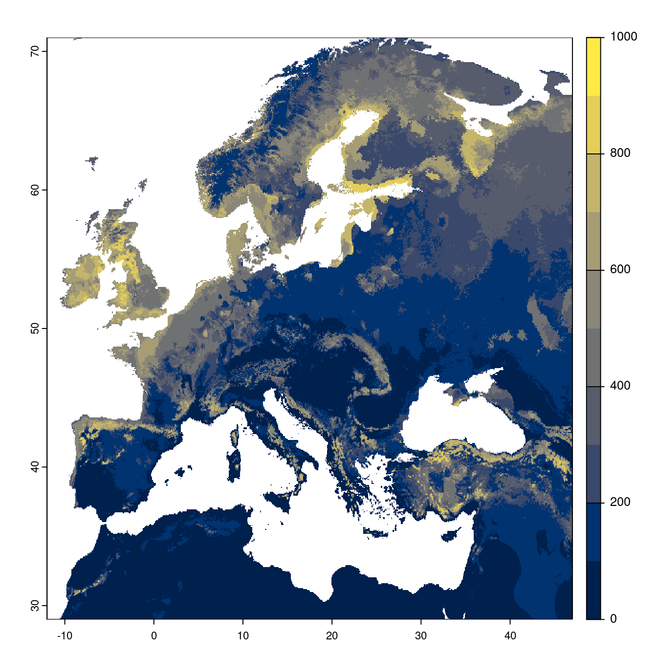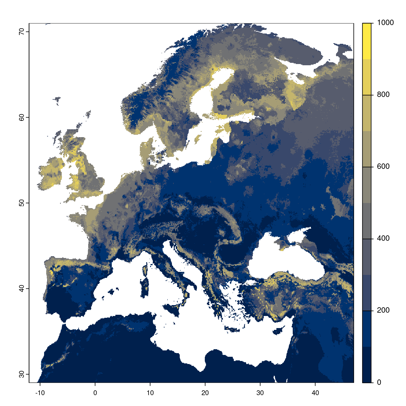 On projette la niche climatique sur ce raster à fine échelle.