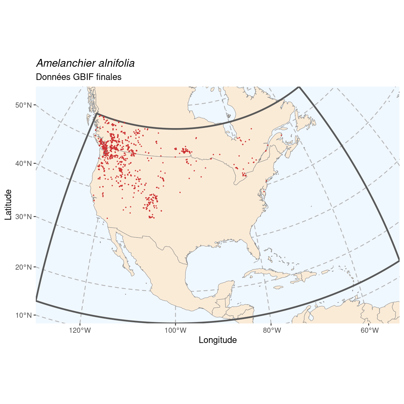 Figure 113.1: Occurrences de Amelanchier alnifolia dans le monde.