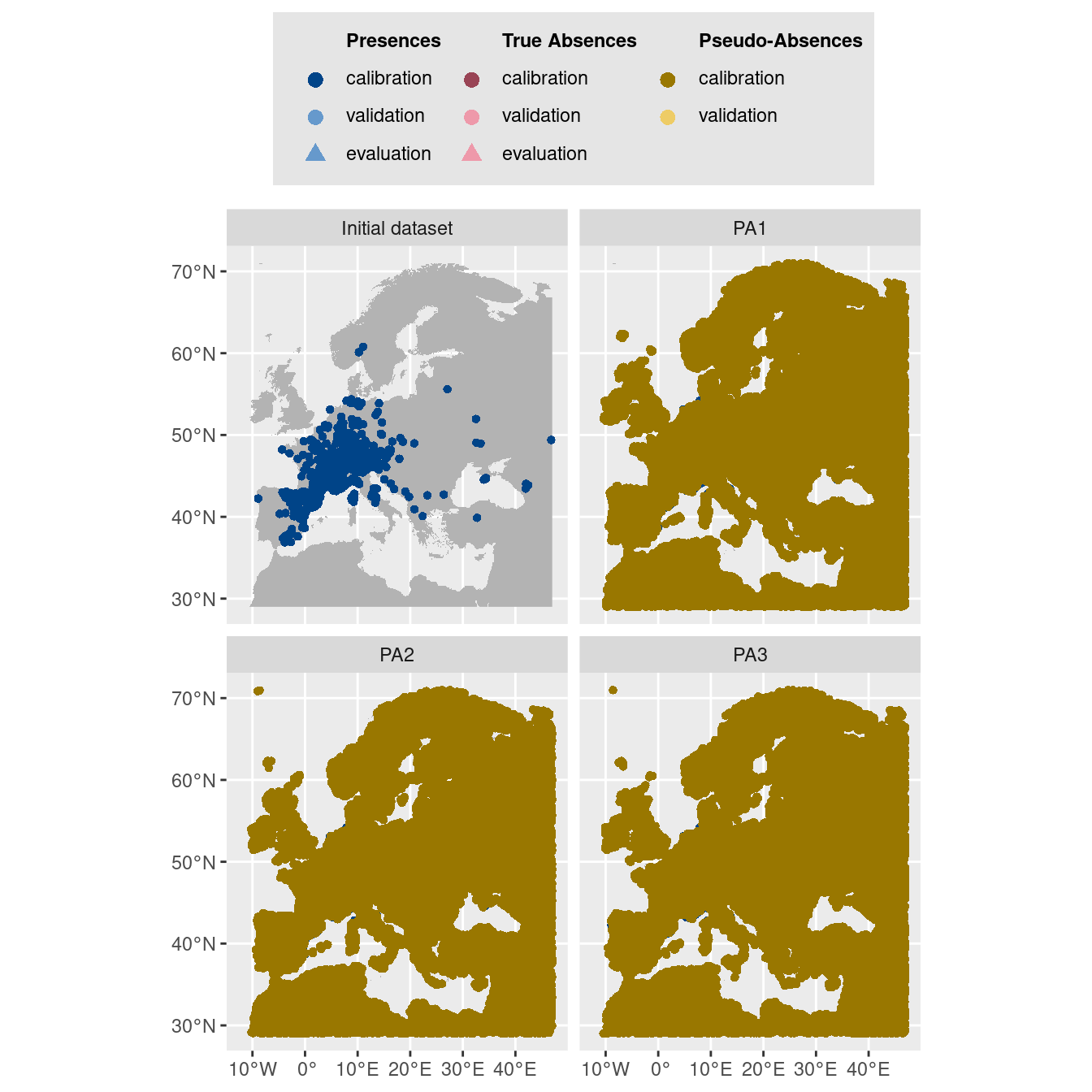 Organisation des données d’entrées (occurrences et données environnementales) et des données produites de pseudo-absences :