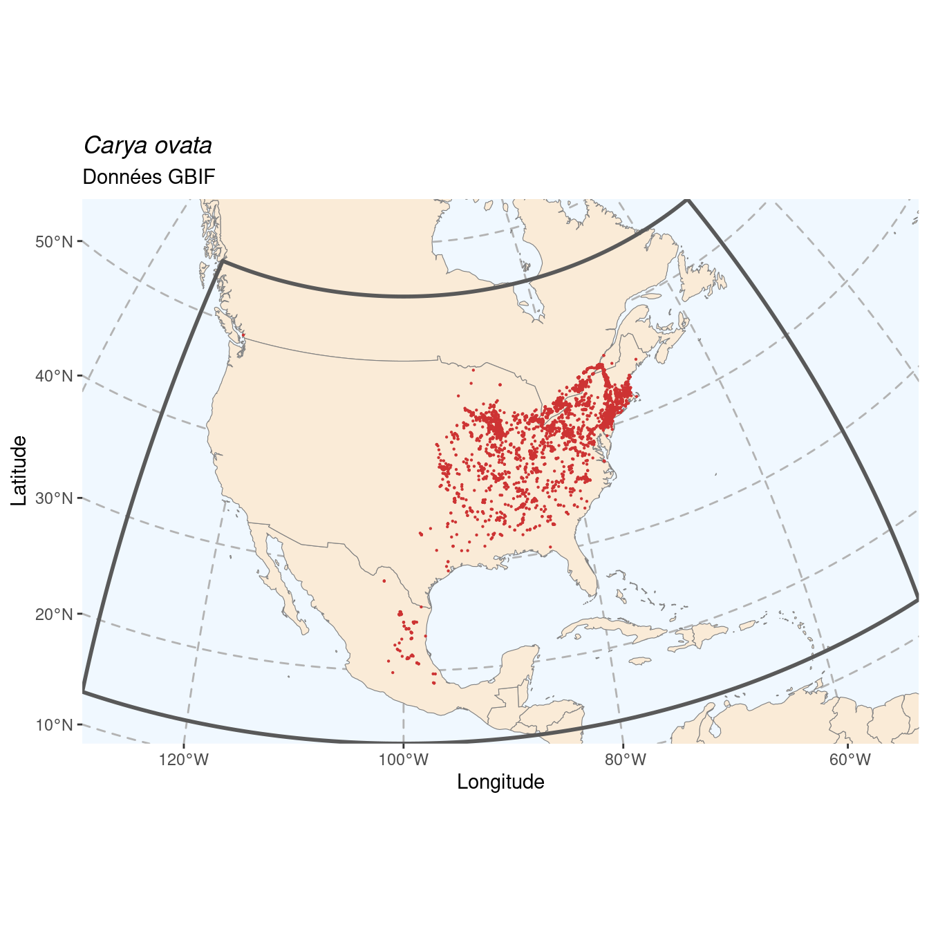 Figure 119.1: Occurrences de Carya ovata dans le monde.