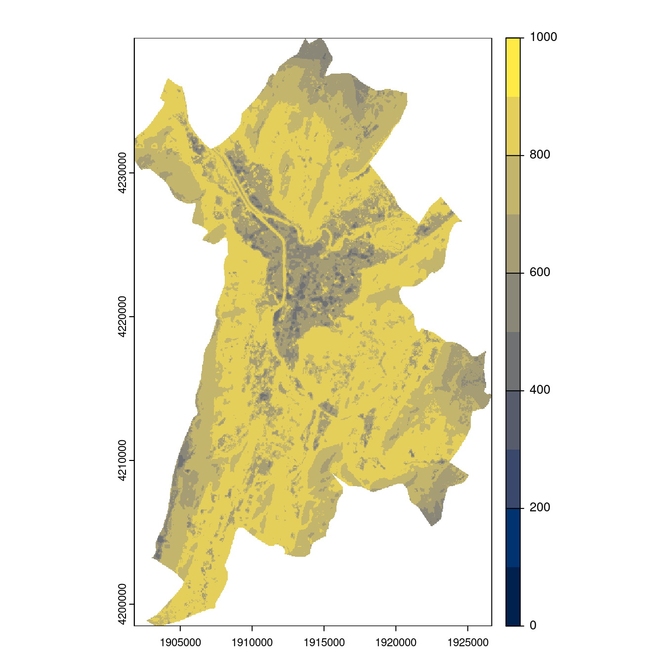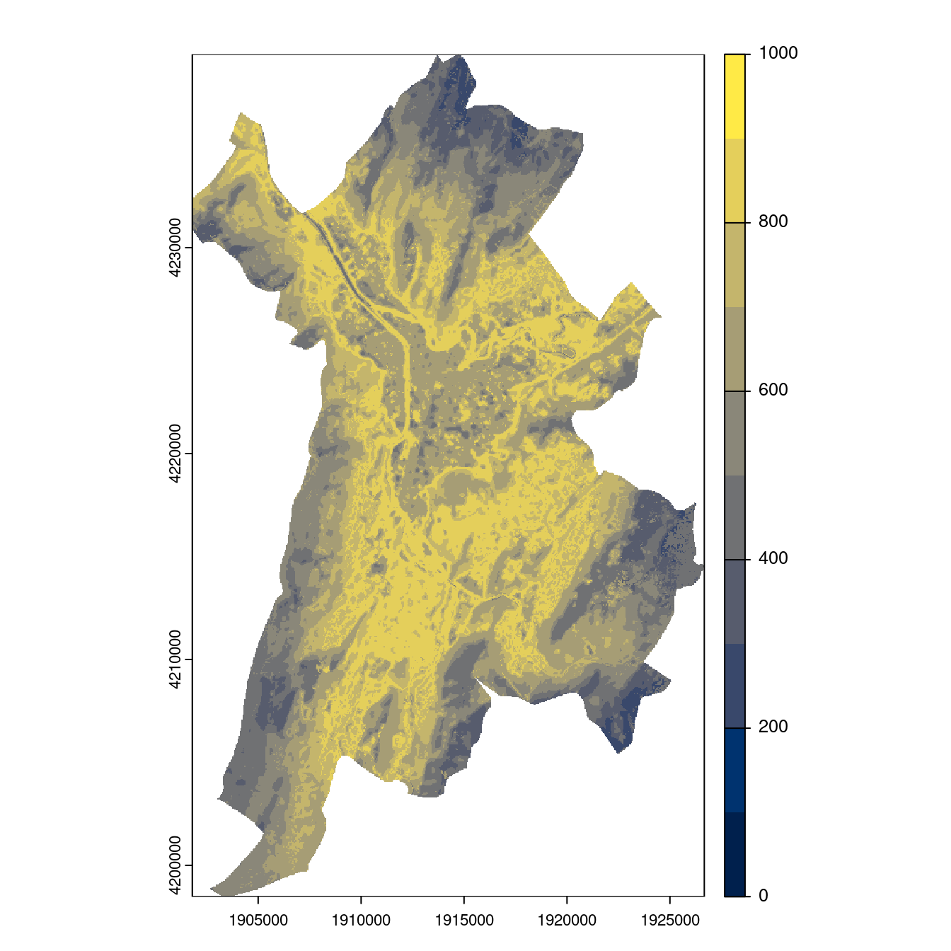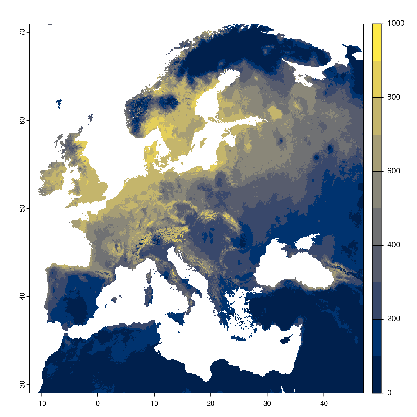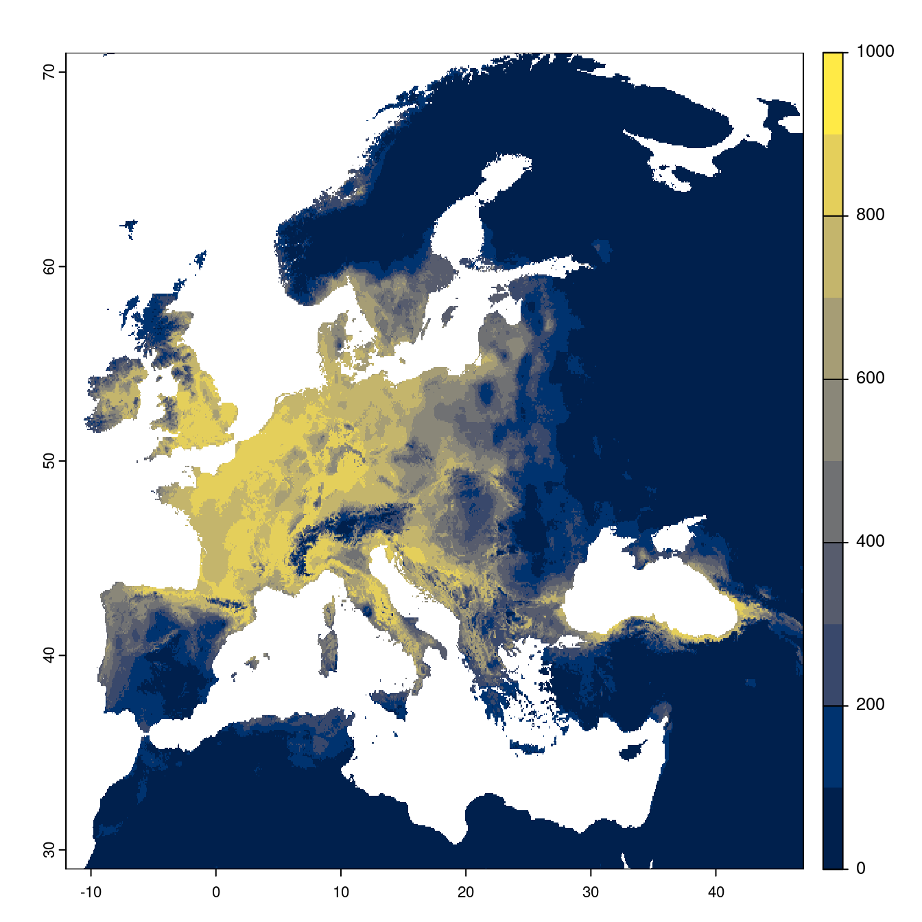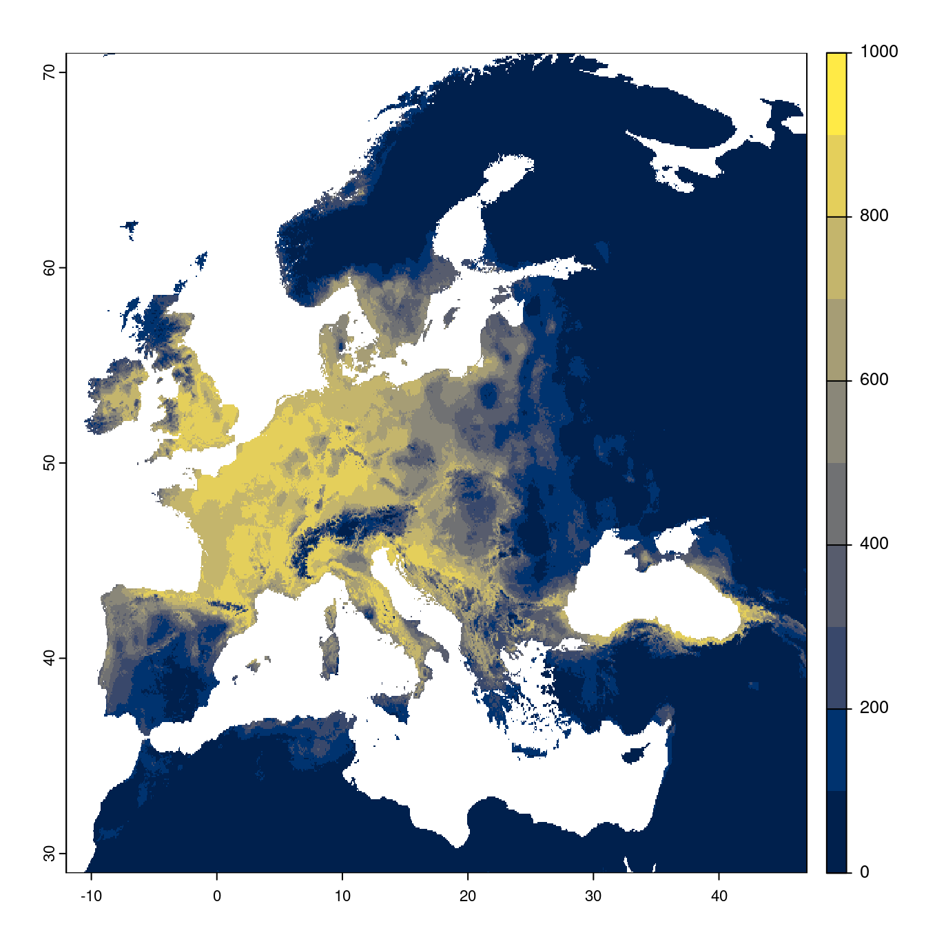 On projette la niche climatique sur ce raster à fine échelle.