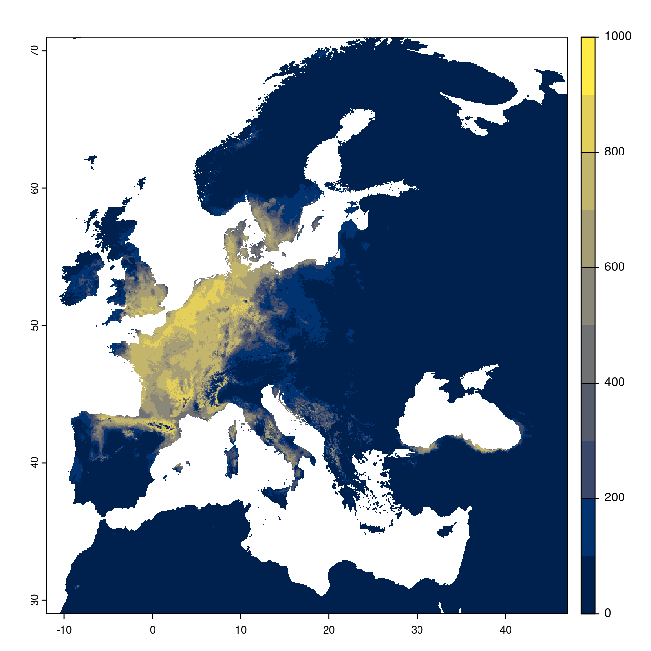 On projette la niche climatique sur ce raster à fine échelle.