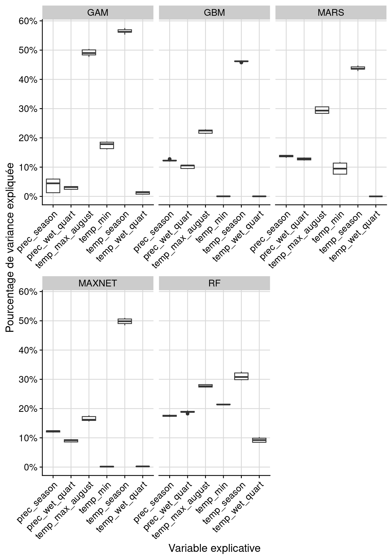 Figure 181.13: Courbes de réponse de chaque variable climatique dans le modèle d’ensemble.