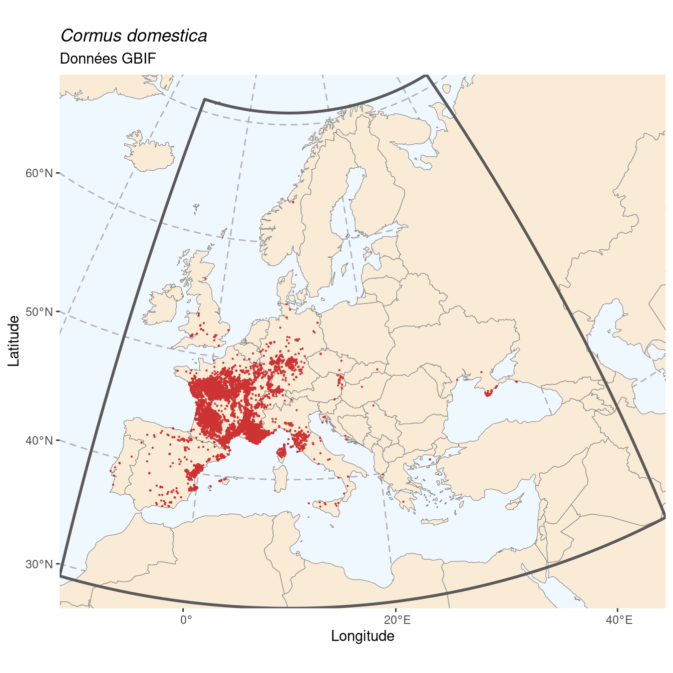 Figure 181.1: Occurrences de Cormus domestica dans le monde.