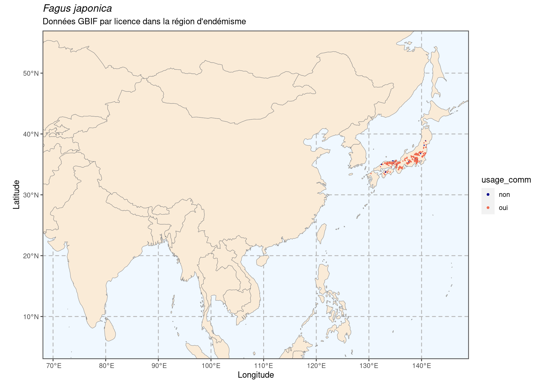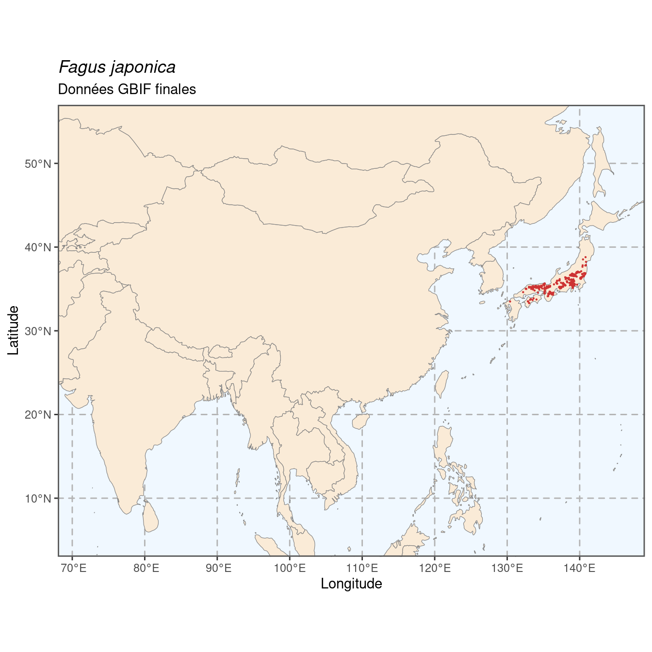 Figure 205.1: Occurrences de Fagus japonica dans le monde.