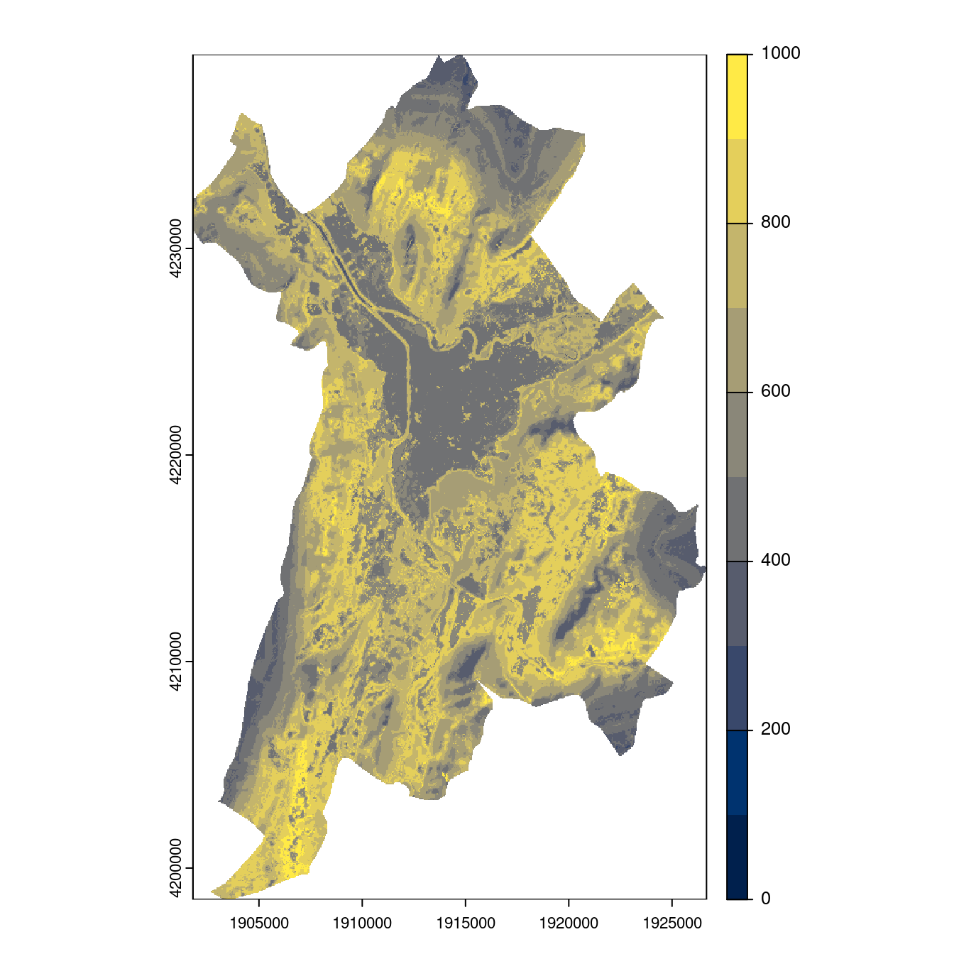 On projette la niche climatique sur ce raster à fine échelle.