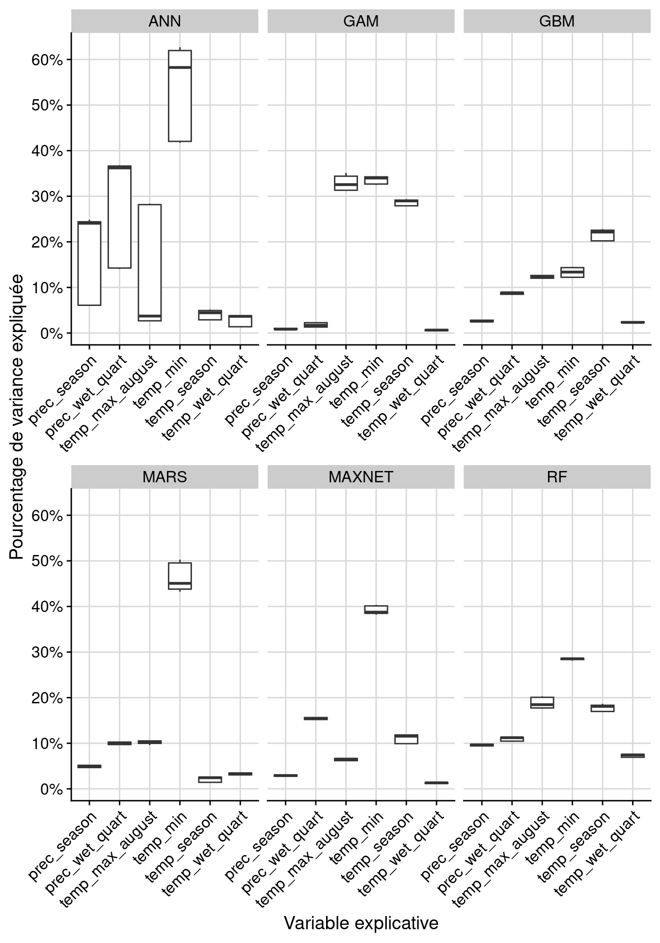 Figure 136.13: Courbes de réponse de chaque variable climatique dans le modèle d’ensemble.