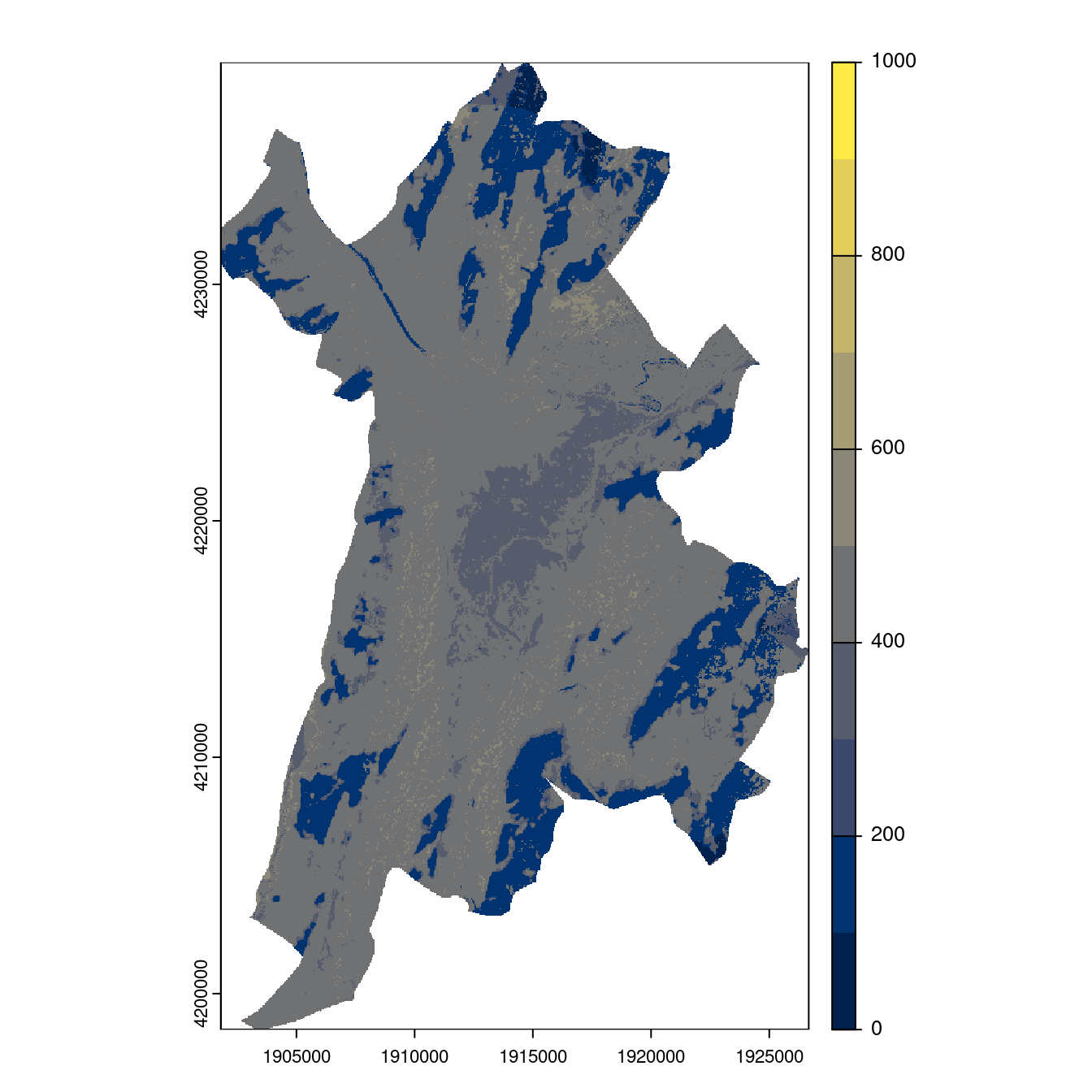On projette la niche climatique sur ce raster à fine échelle.