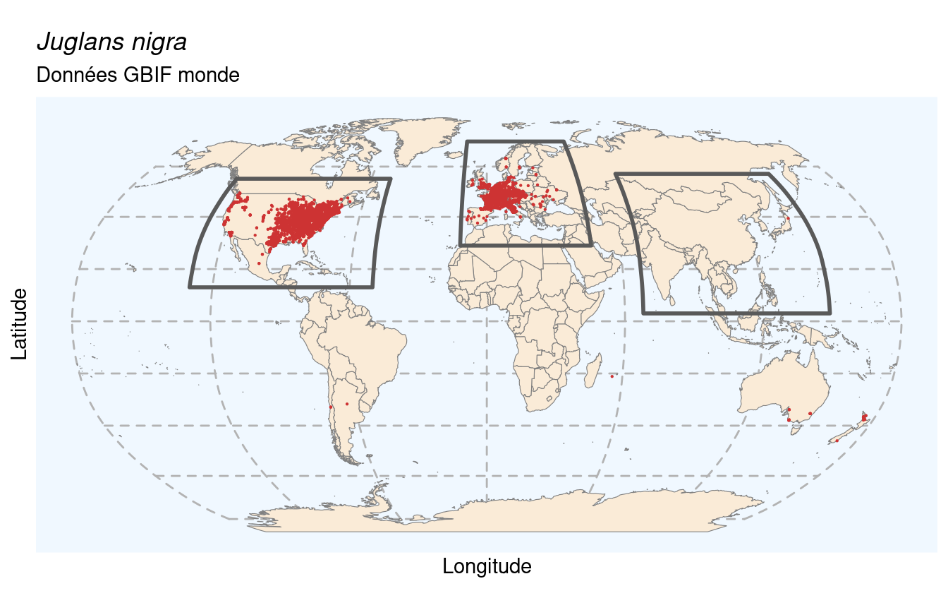 Figure 252.1: Occurrences de Juglans nigra dans le monde.
