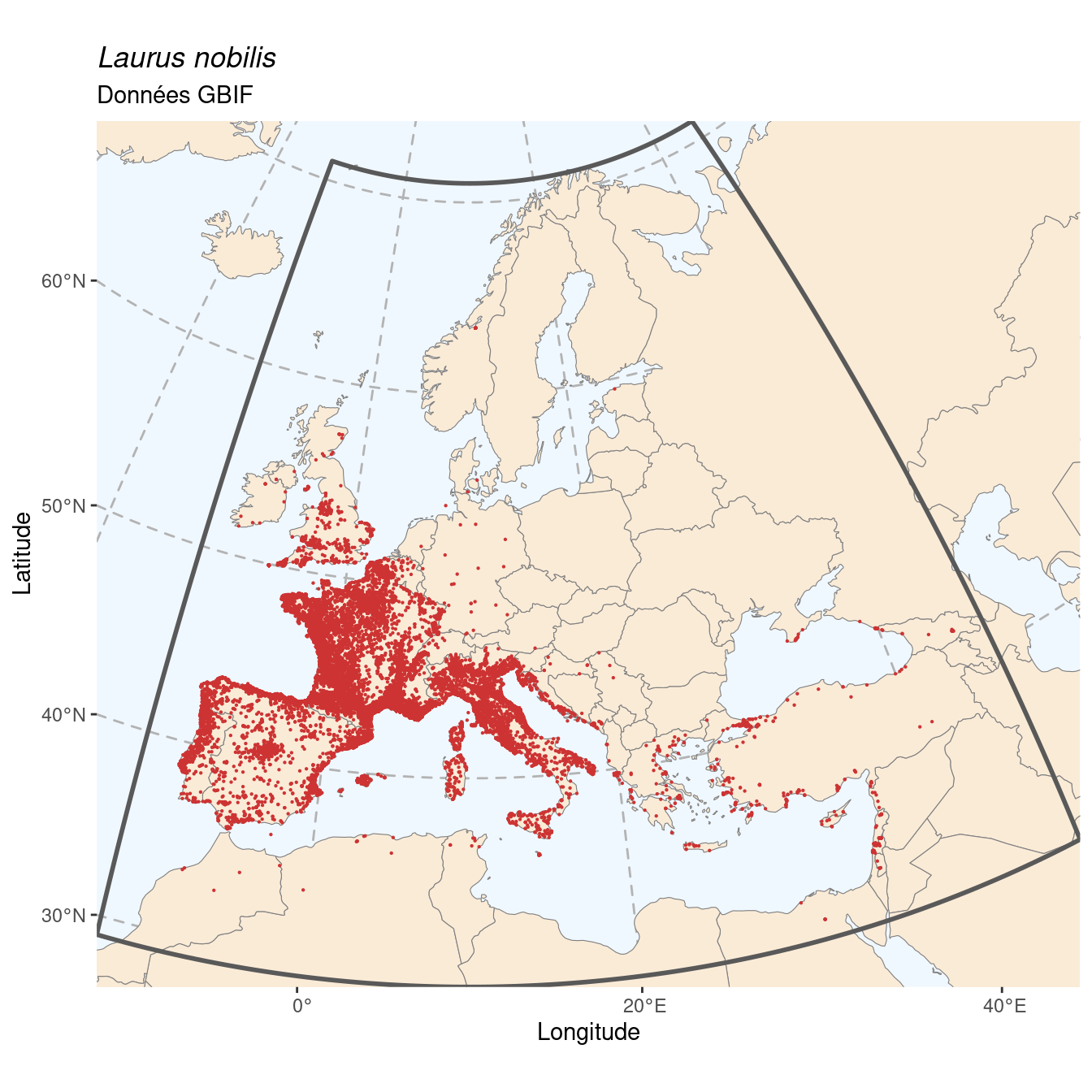 Figure 253.1: Occurrences de Laurus nobilis dans le monde.