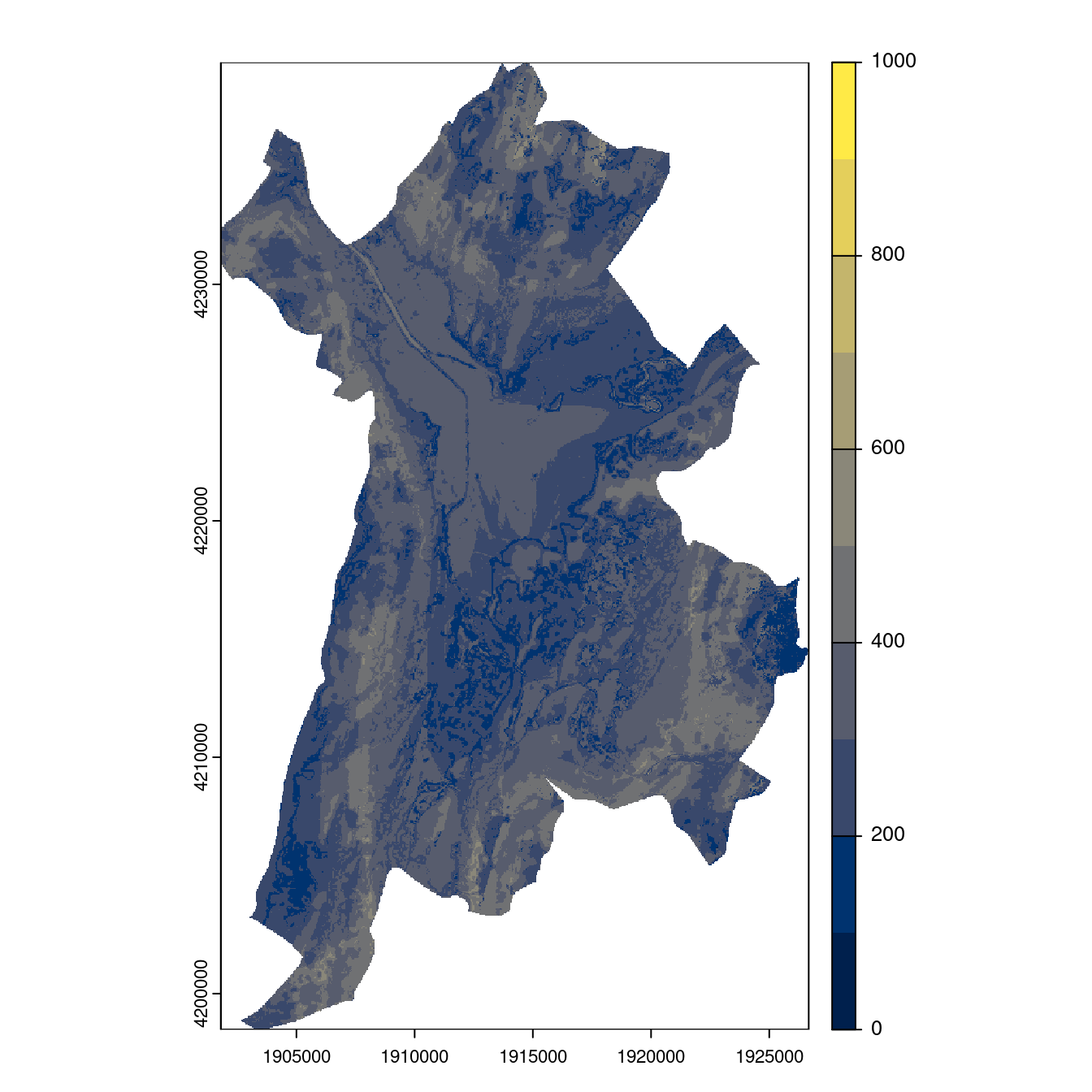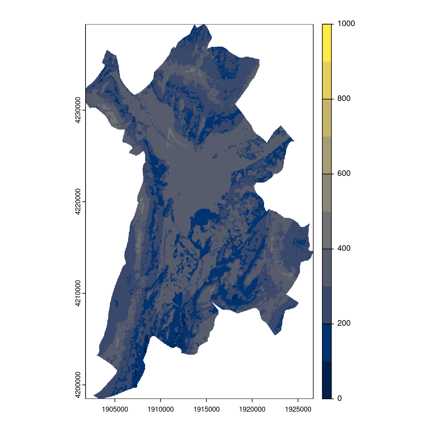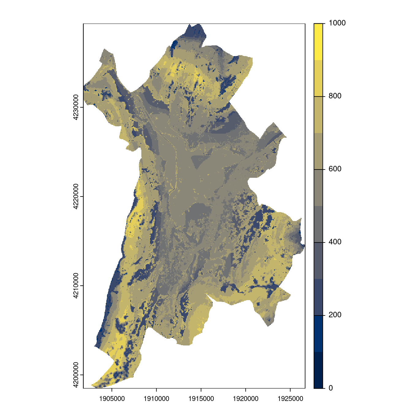 On projette la niche climatique sur ce raster à fine échelle.