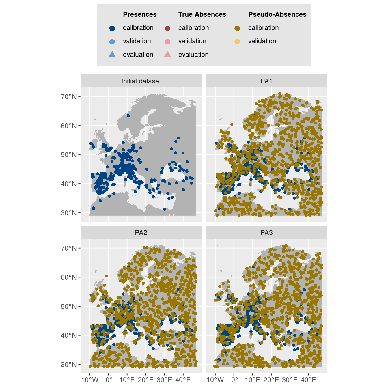 Organisation des données d’entrées (occurrences et données environnementales) et des données produites de pseudo-absences :