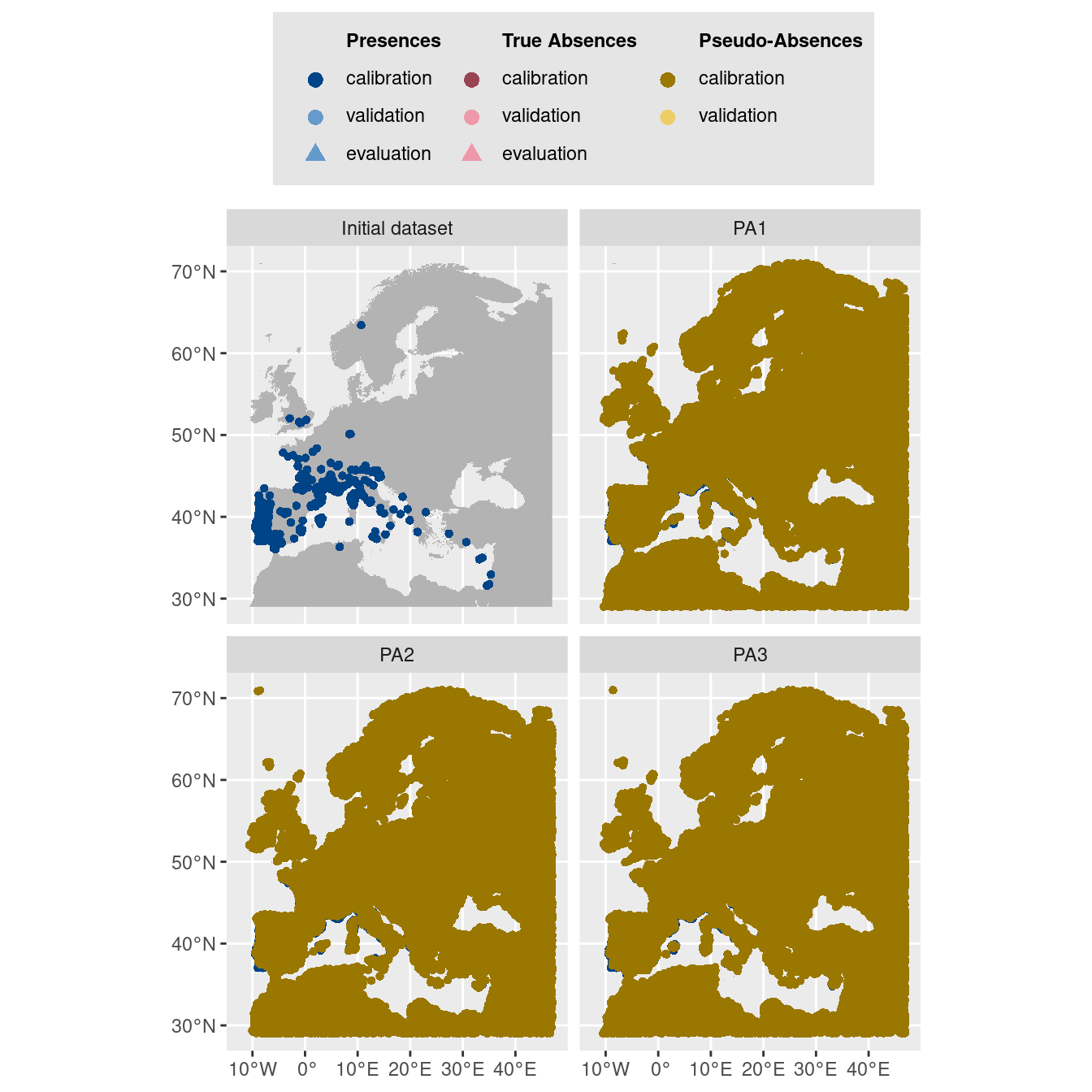 Organisation des données d’entrées (occurrences et données environnementales) et des données produites de pseudo-absences :