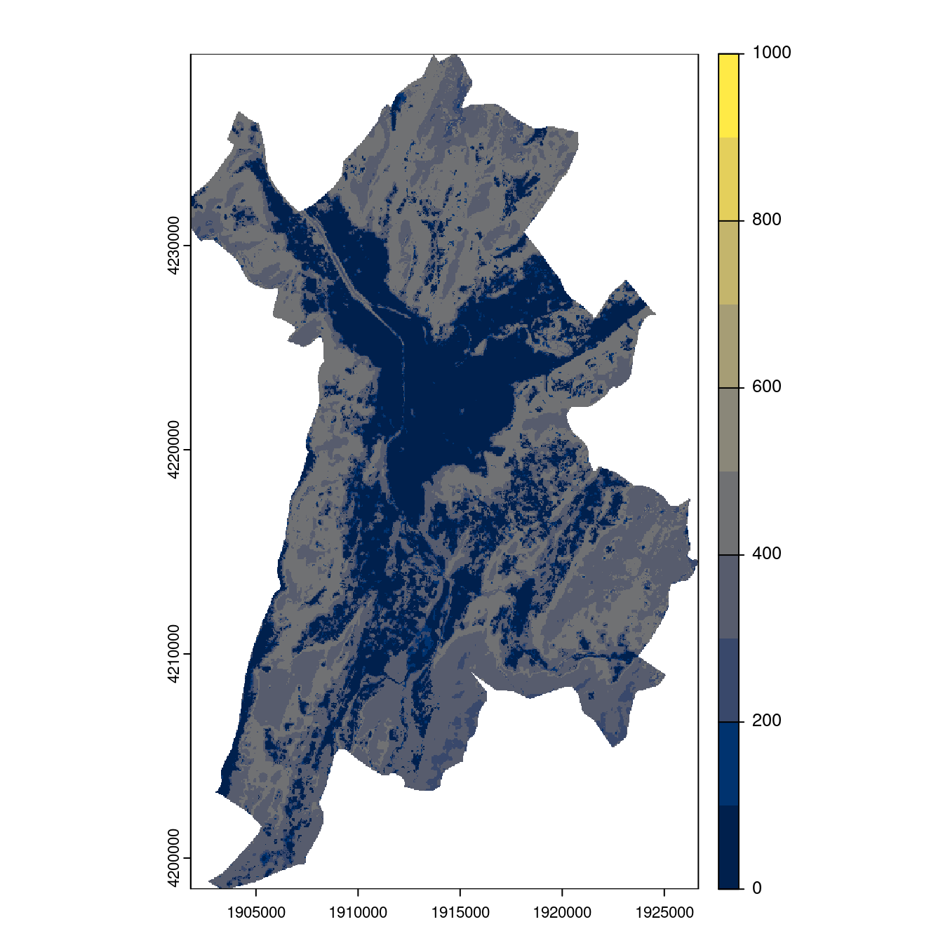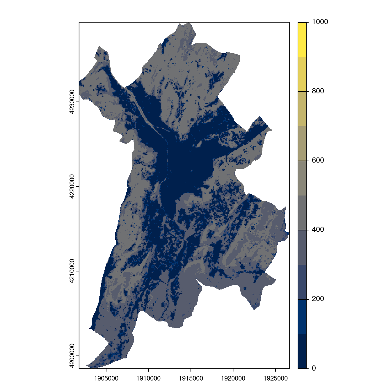 On projette la niche climatique sur ce raster à fine échelle.