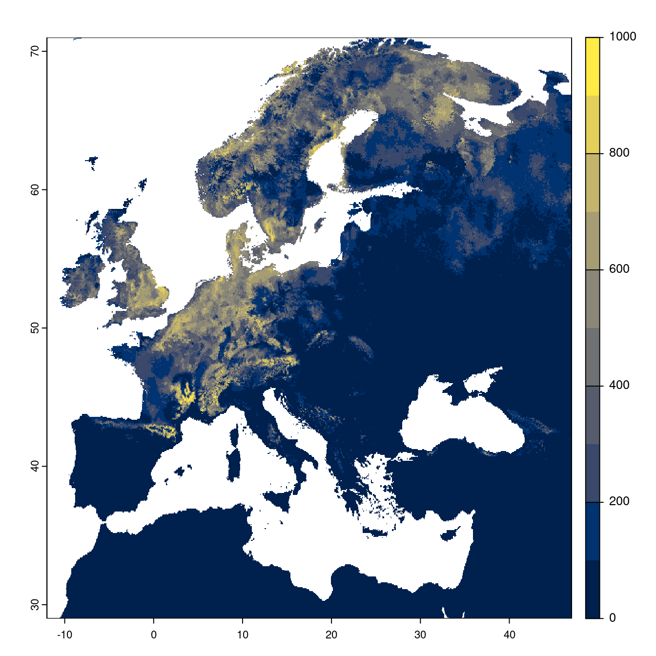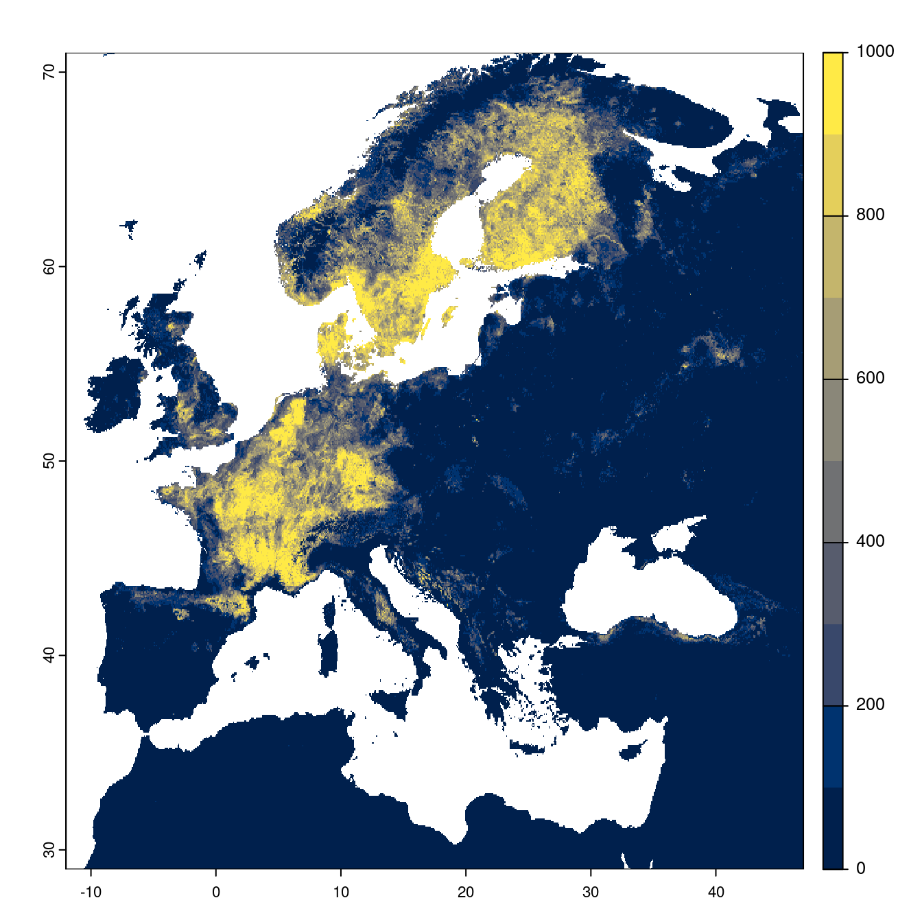 Figure 65.2: Occurrence de Pinus sylvestris dans la région d’endémisme.