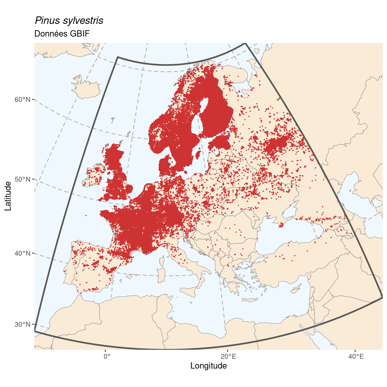 Figure 65.1: Occurrences de Pinus sylvestris dans le monde.
