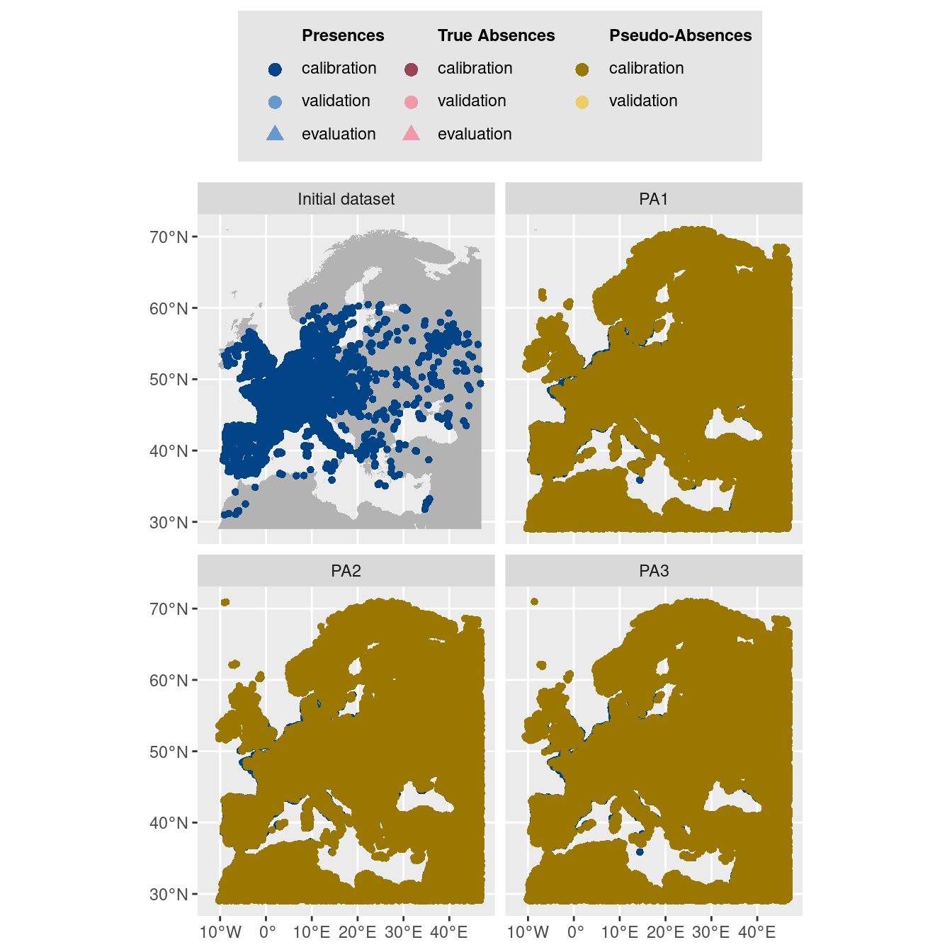 Organisation des données d’entrées (occurrences et données environnementales) et des données produites de pseudo-absences :