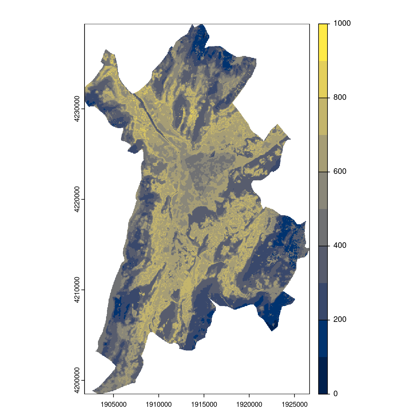 On projette la niche climatique sur ce raster à fine échelle.