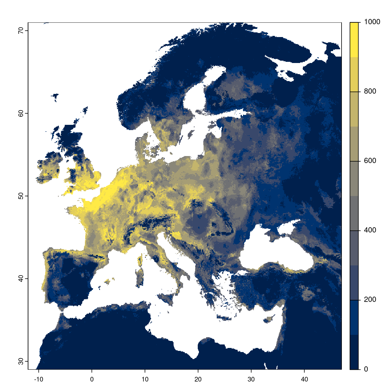 On évalue la proportion d’occurrences dans chaque région, en utilisant les 3 masques créés précédemment. Si on a au moins 50 % des occurrences dans une région, on peut continuer en travaillant uniquement sur ces données. Sinon, on vérifie qu’au moins 67 % des données tombent dans l’ensemble des régions, et on prend la région la plus représentée. Au final, s’il s’agit d’une espèce endémique d’Europe, on n’a pas besoin de manipulation supplémentaire.