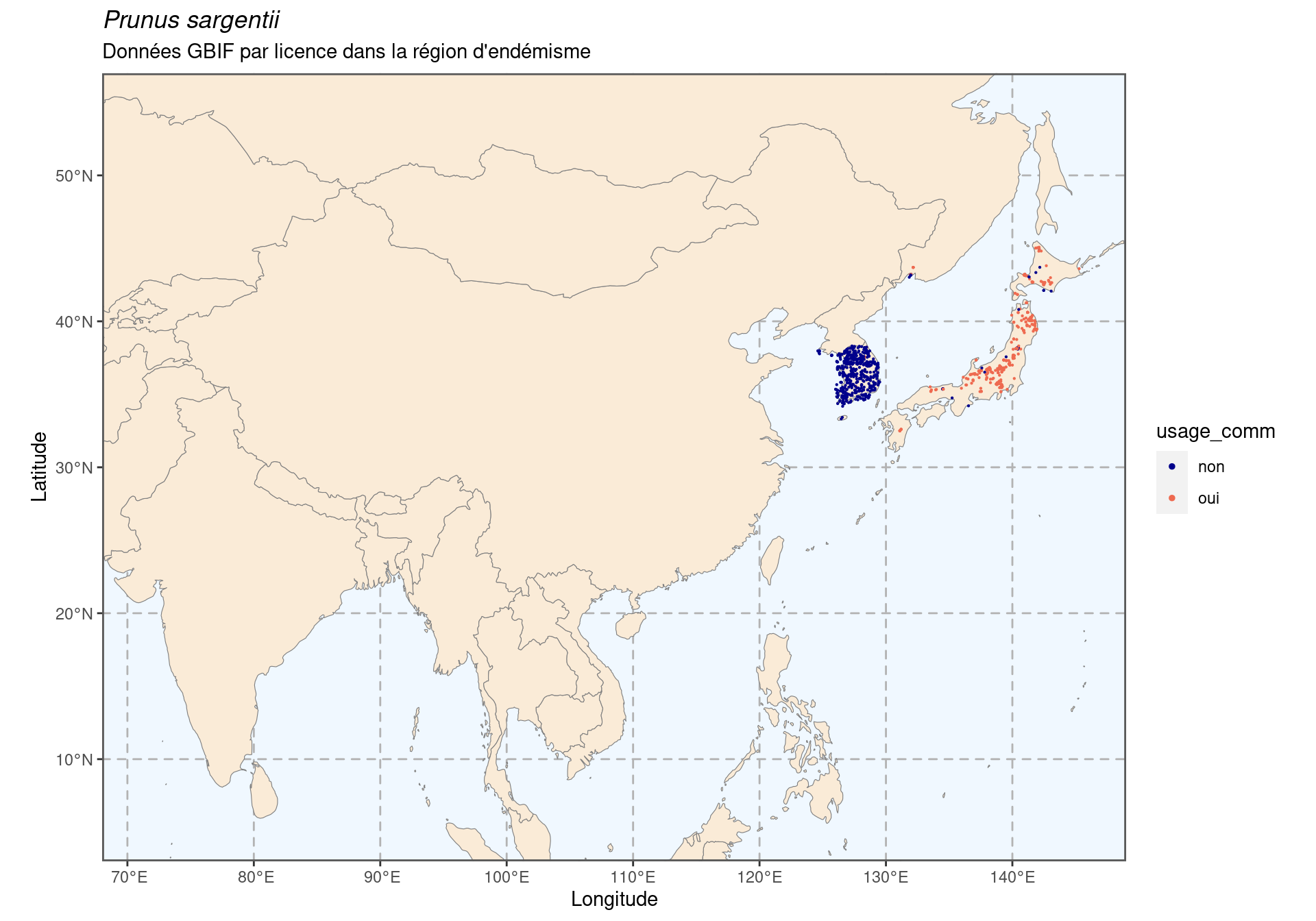 Figure 296.1: Occurrences de Prunus sargentii dans le monde.