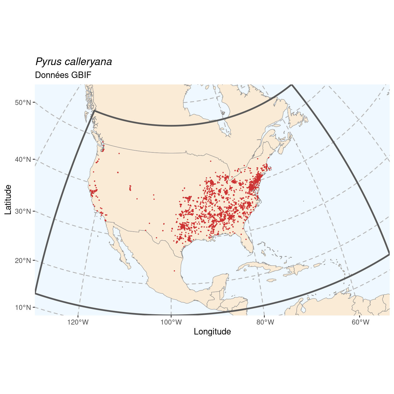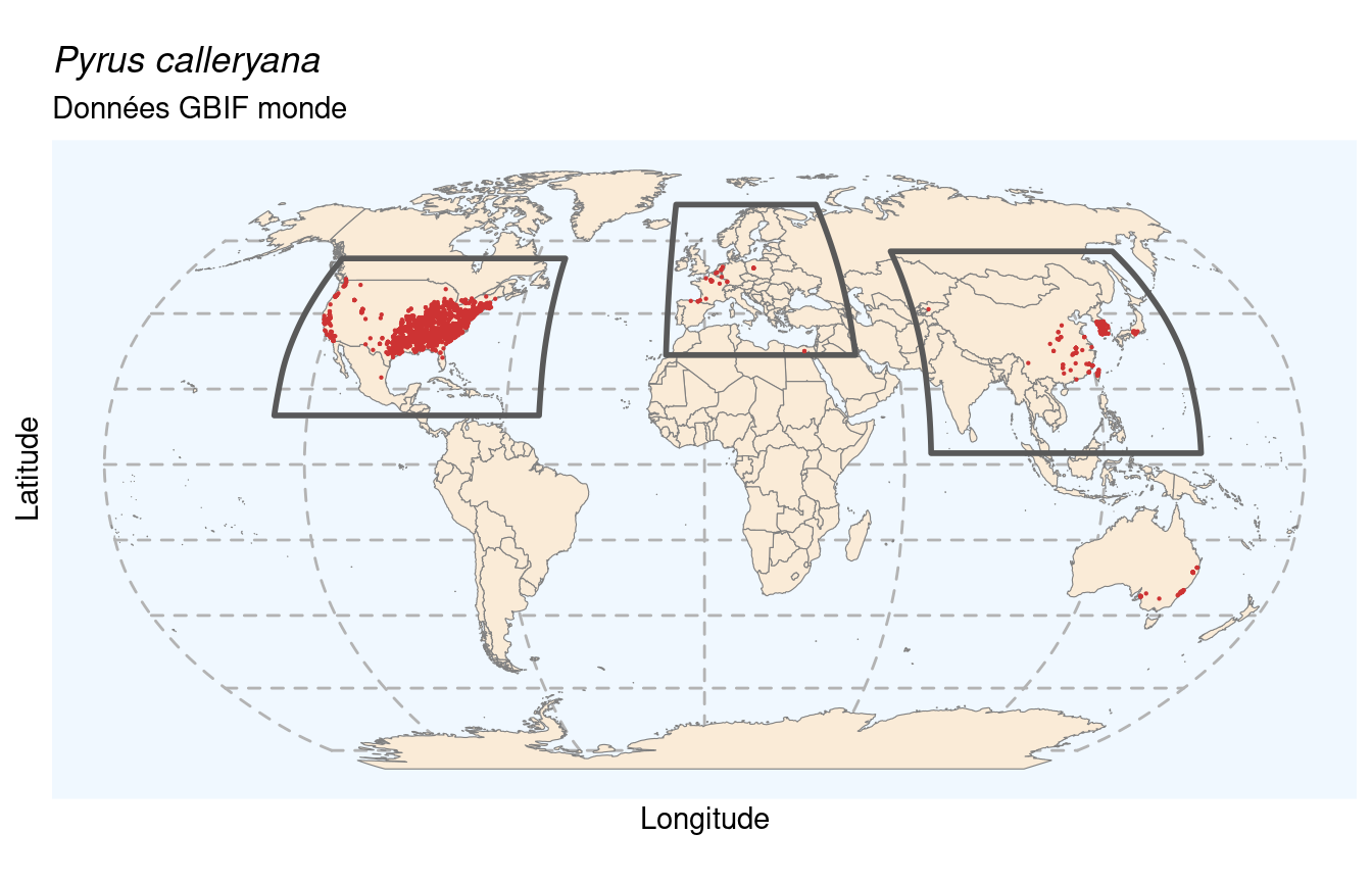 Figure 7.1: Occurrences de Pyrus calleryana dans le monde.