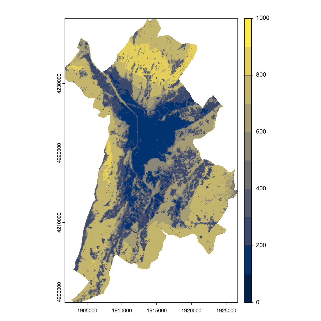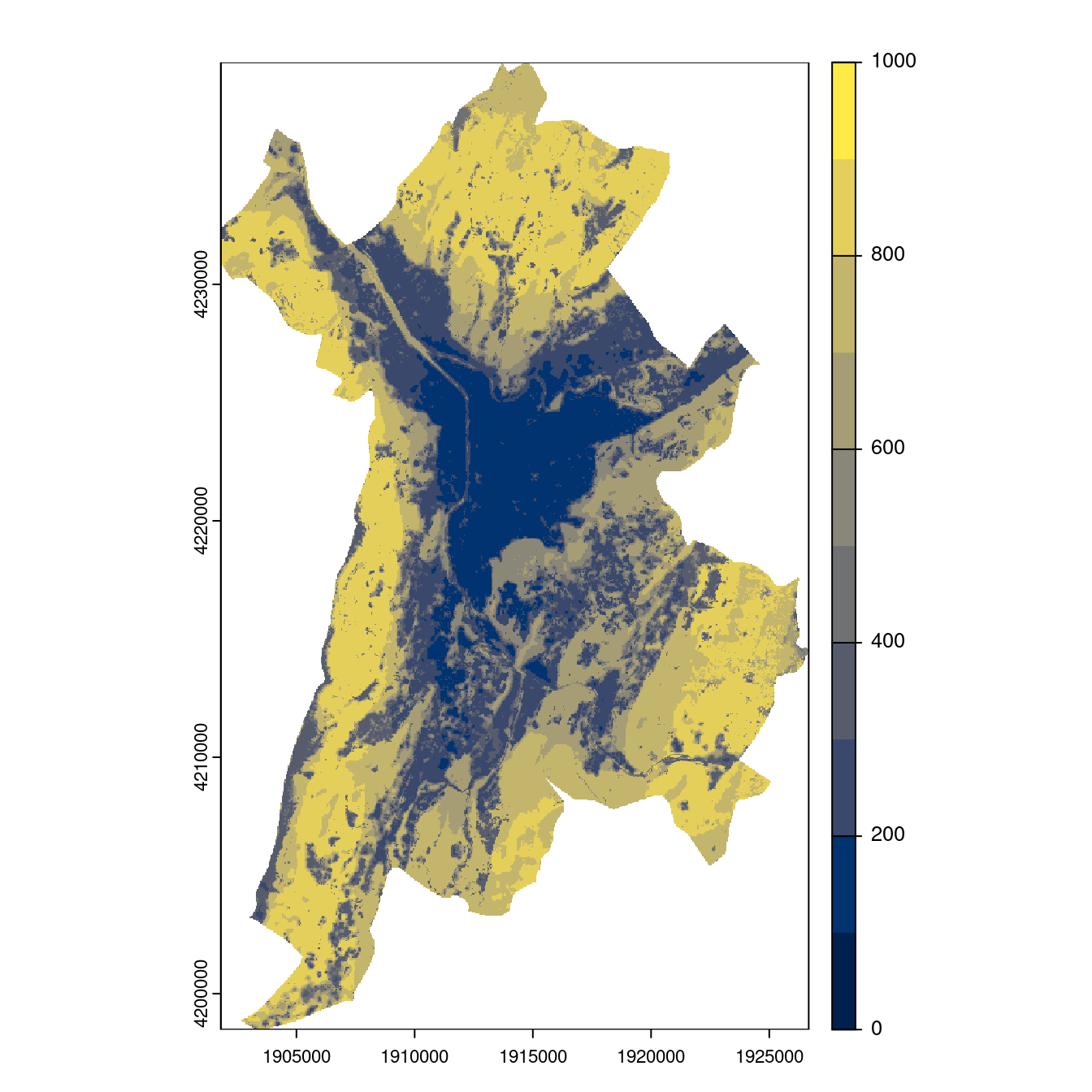On projette la niche climatique sur ce raster à fine échelle.