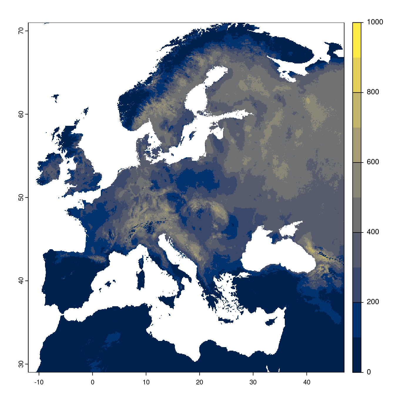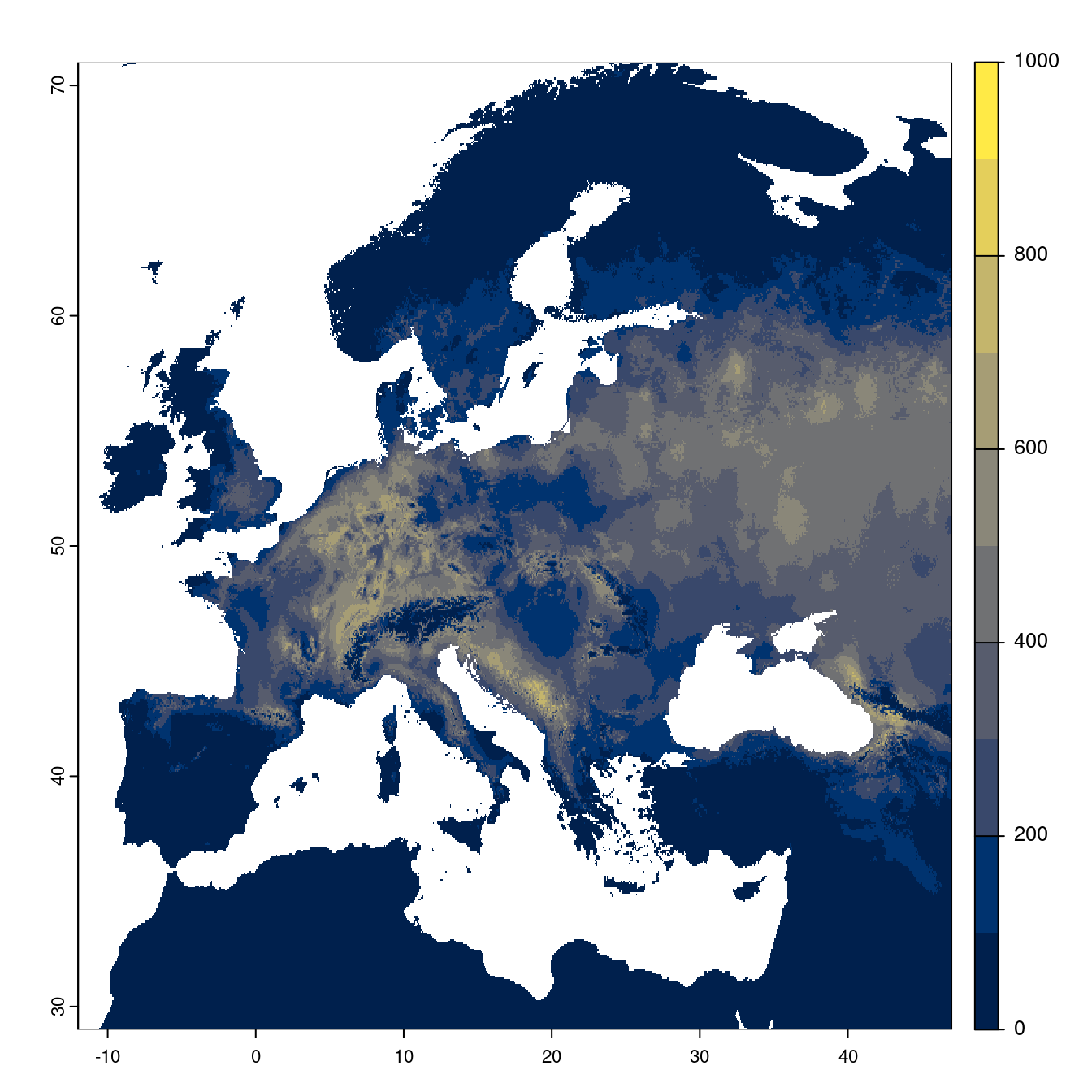 - à peu près 7 pixels × 9 (WorldClim)