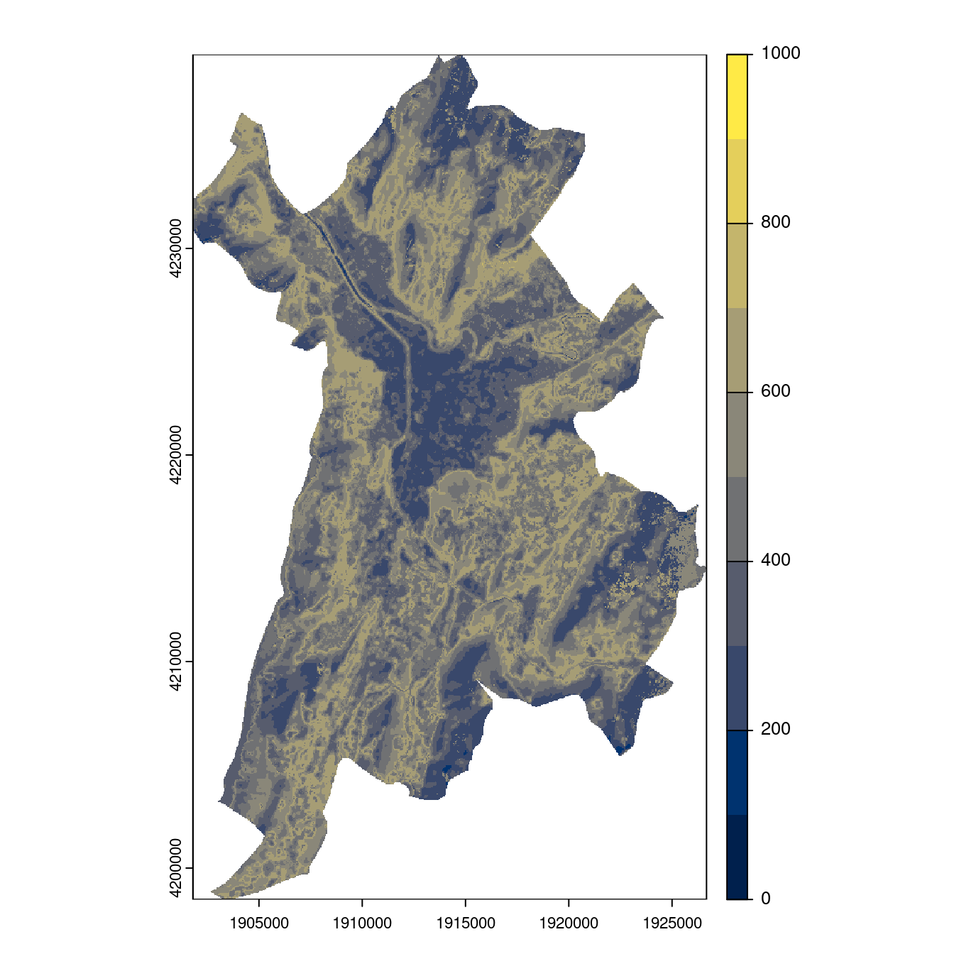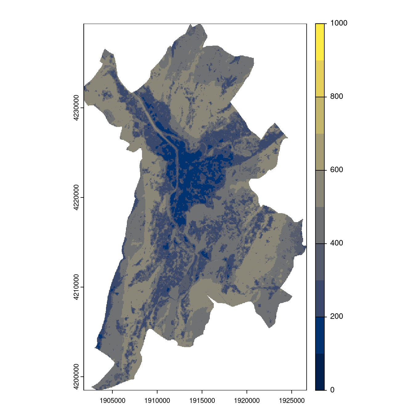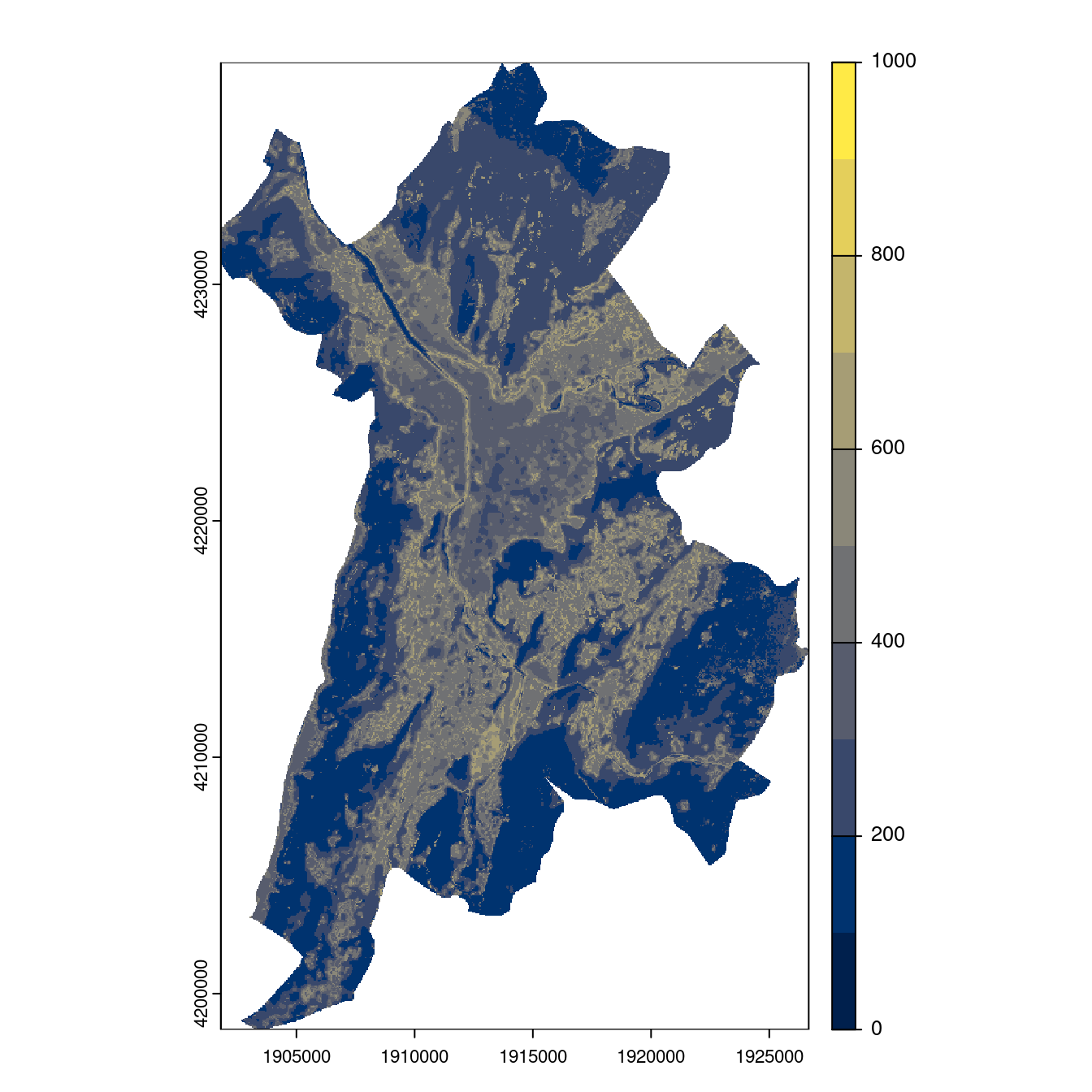 On projette la niche climatique sur ce raster à fine échelle.