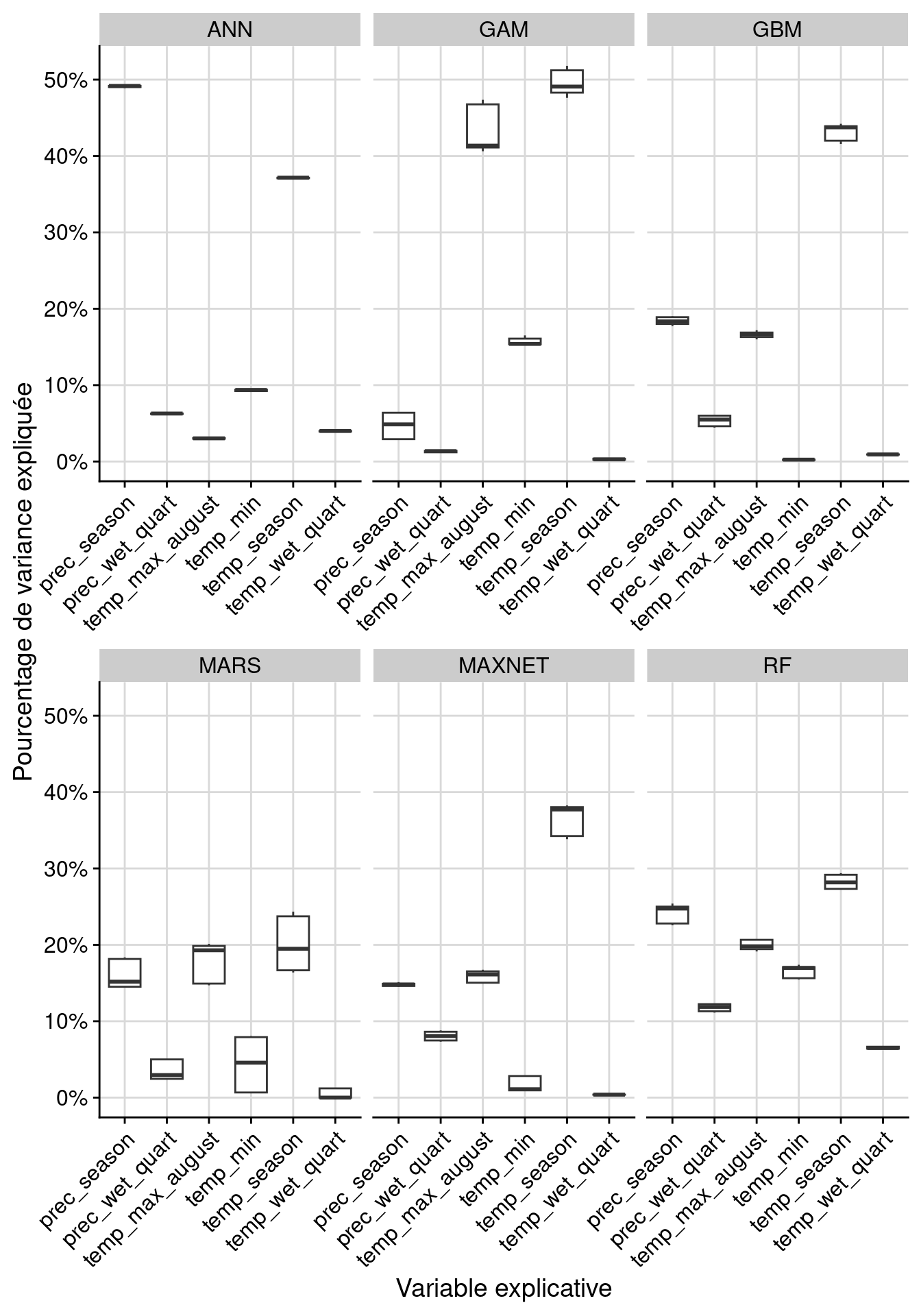 Figure 80.13: Courbes de réponse de chaque variable climatique dans le modèle d’ensemble.