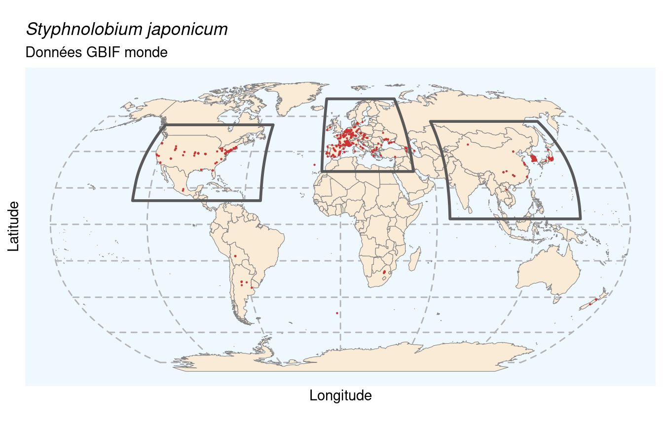 Figure 27.1: Occurrences de Styphnolobium japonicum dans le monde.