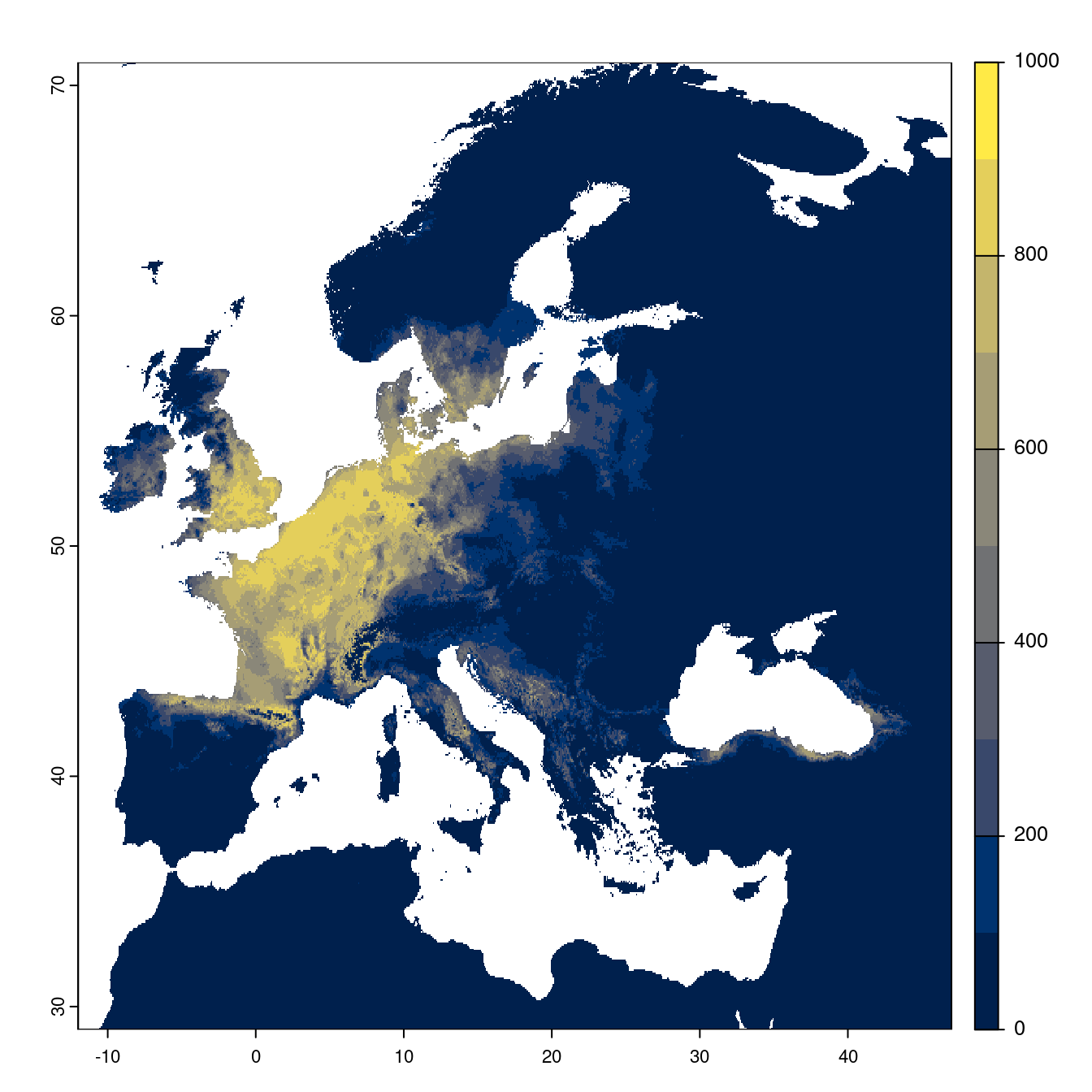 On évalue la proportion d’occurrences dans chaque région, en utilisant les 3 masques créés précédemment. Si on a au moins 50 % des occurrences dans une région, on peut continuer en travaillant uniquement sur ces données. Sinon, on vérifie qu’au moins 67 % des données tombent dans l’ensemble des régions, et on prend la région la plus représentée. Au final, s’il s’agit d’une espèce endémique d’Europe, on n’a pas besoin de manipulation supplémentaire.