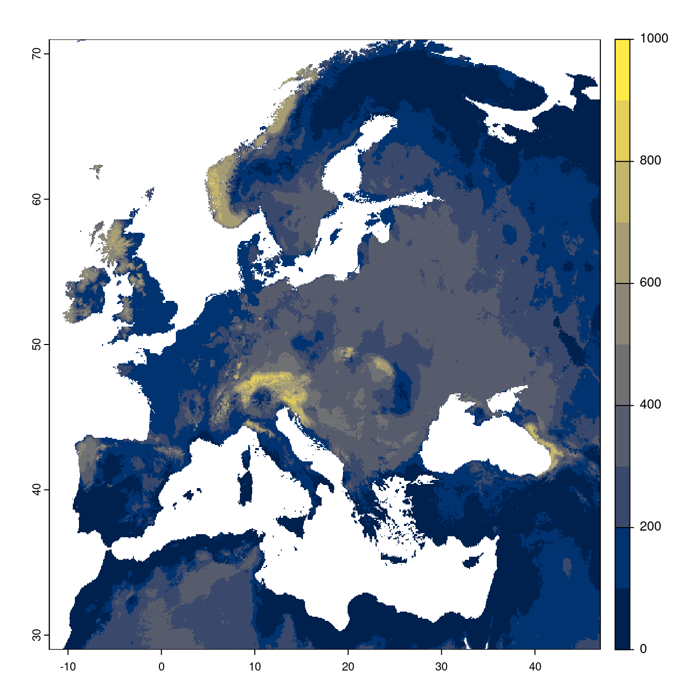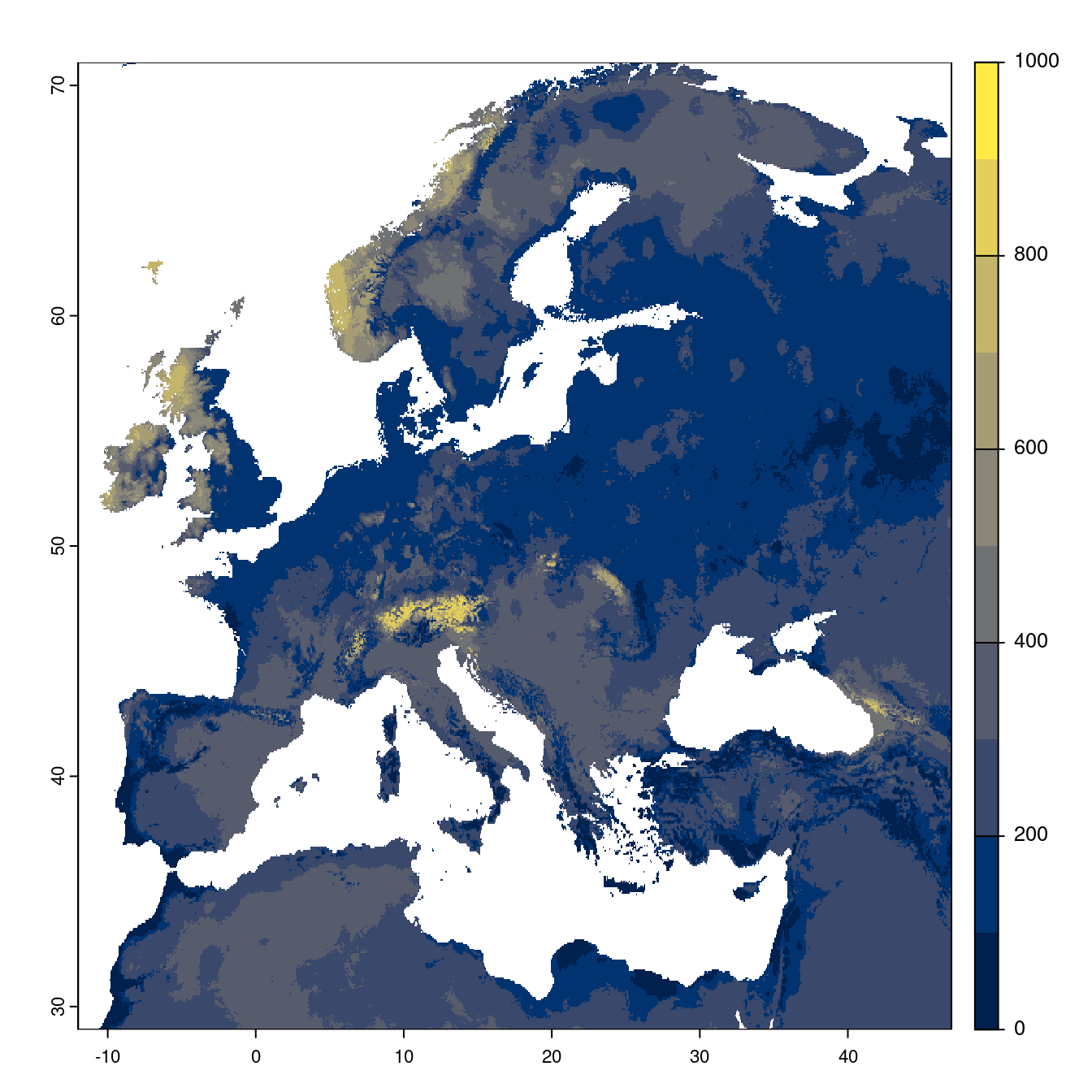 On évalue la proportion d’occurrences dans chaque région, en utilisant les 3 masques créés précédemment. Si on a au moins 50 % des occurrences dans une région, on peut continuer en travaillant uniquement sur ces données. Sinon, on vérifie qu’au moins 67 % des données tombent dans l’ensemble des régions, et on prend la région la plus représentée. Au final, s’il s’agit d’une espèce endémique d’Europe, on n’a pas besoin de manipulation supplémentaire.
